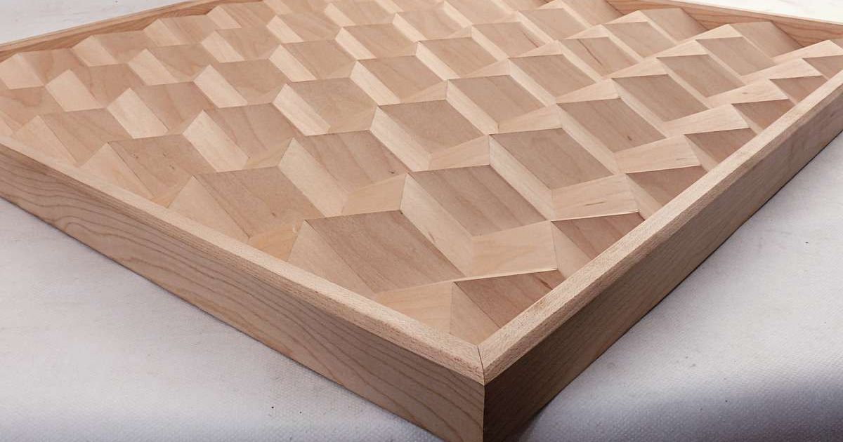 Formfurnier hat eine Technik entwickelt, mit der sich Echtholzfurnier wie Papier in Origamimustern falten lässt. Dazu wird das Furnierblatt bearbeitet und anschliessend auf einen Träger aus rezykliertem Baumwollgewebe kaschiert, das mit einem lösemittelfreien und ungiftigen Harz getränkt ist. Das Gesamtmaterial ist im Endeffekt etwa 2 mm dick und dank der Origamigeometrie trotzdem formstabil. Alle Holzarten sind dafür geeignet.