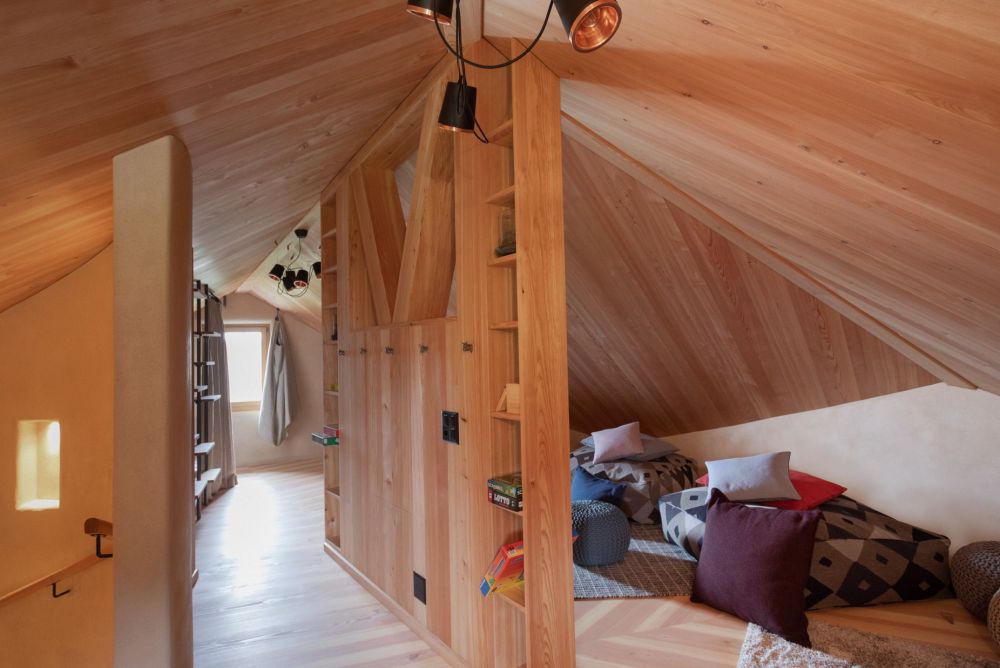Verwendet wurde beispielsweise nur einheimisches Holz. Alle Winkel im Haus sind über 90 Grad, was für eine bessere Zirkulation der Luft, beziehungsweise Wärmeenergie sorgt. Die Lichtquellen wurden auf ein Minimum reduziert. Durch dreifach verglaste Fenster ohne UV-Schutz gibt es mehr Lichteinfluss.