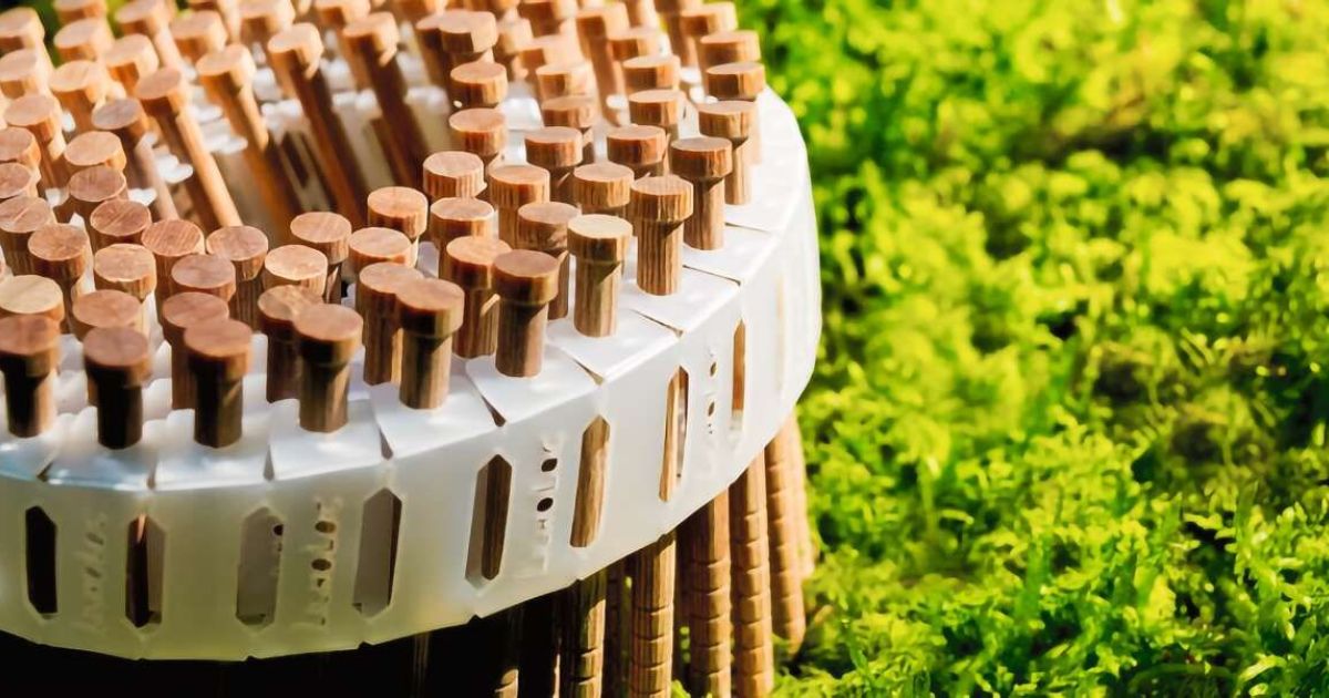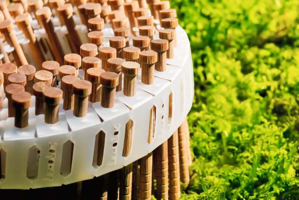 Der Buchen-Holznagel «F60» mit Kopf wurde von der Raimund Beck AG eigens für den Fassadenbau entwickelt. Er verfügt über eine stumpfe Anti-Spalt-Spitze und ist für die gängigsten Nadelholz-Fassaden sowie eine Vielzahl weiterer Anwendungen geeignet. Sowohl im Innen- als auch im Aussenbereich, wie beispielsweise bei Sicht- schutzelementen, Gartenhäusern, Gartenpavillons und Raumtrennern sind die Holznägel anwendbar. Der 78 mm lange Nagel mit seinem 4,7 mm grossen Durchmesser hat dank dem Holzschweisseffekt eine hohe Haltekraft und bildet keine Wärmebrücke. Auf einer Spule befinden sich jeweils 100 Nägel.