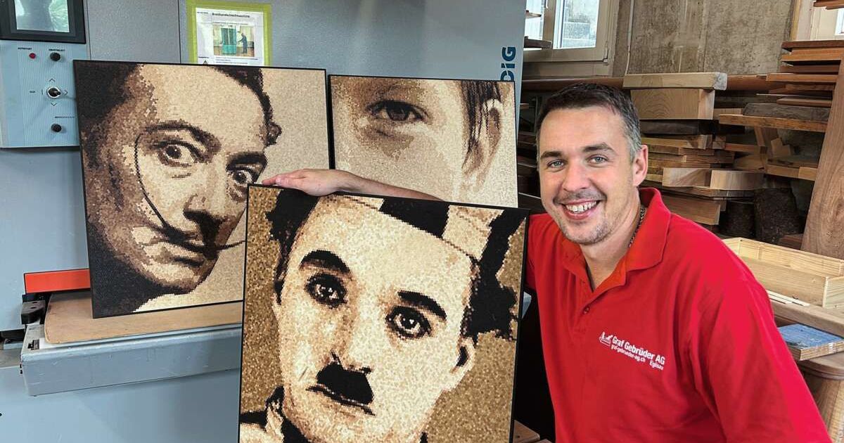 Salvador Dalí und Charlie Chaplin sind ihm gelungen. Aber beim «Holzografieren» ist das wie beim Fotografieren – am liebsten bildet man das ab, was man liebt. Und so hängt neben den beiden Stars auch ein Holzbild seines Sohnes. Aktuell übersetzt der Schreiner ein Foto von sich und seiner Frau ins Hölzige. Allerdings nicht wie bisher im Viereckformat, sondern rund. Das wird ihn noch eine Weile beschäftigen, denn selbst nach der Optimierung aller Prozesse, ist so ein Holzfoto à la Stepin immer noch eine zeitraubende Präzisionsarbeit von fast unbezahlbarem Wert.