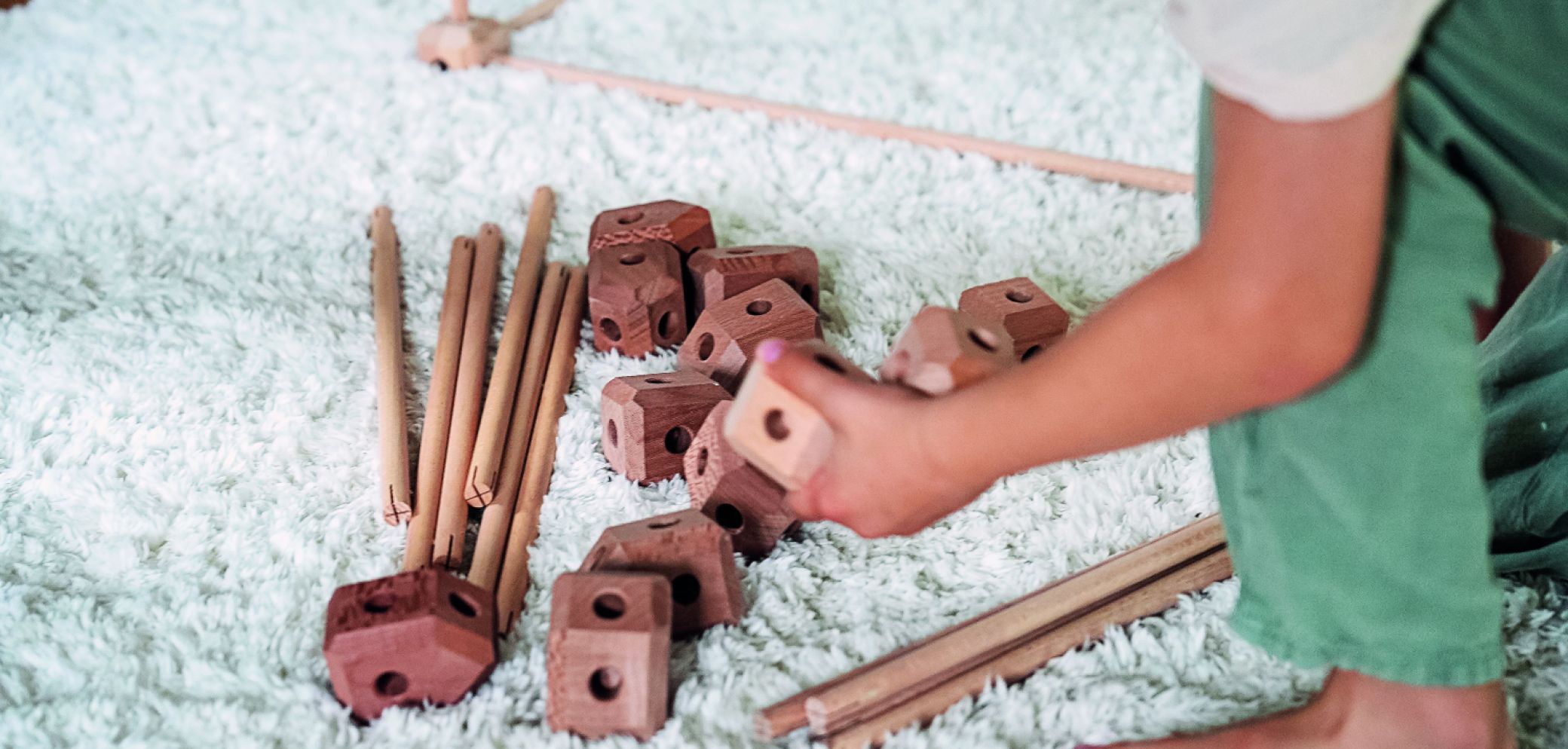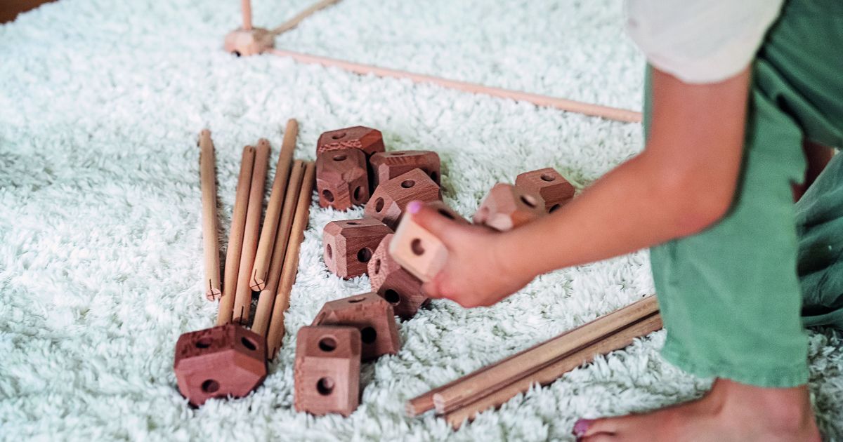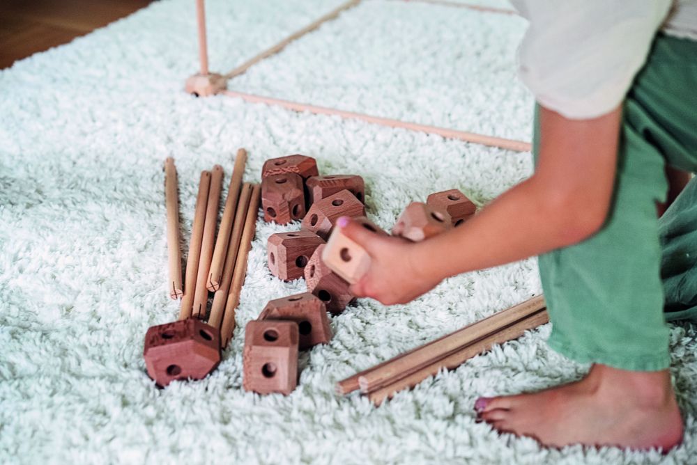 Mit dem Holzspielzeug können Kinder ihre motorischen Fähigkeiten und Kreativität erlernen. Bild: Hüttenheld