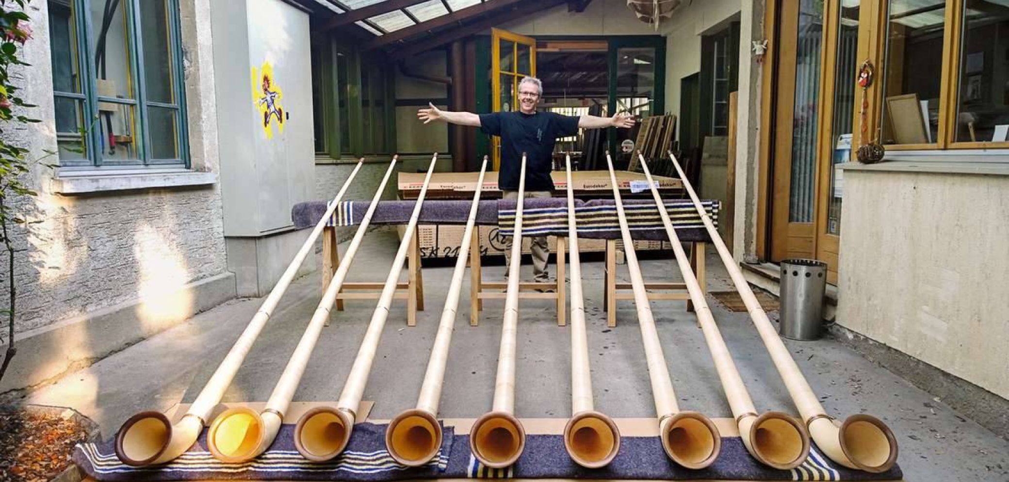 In Svizzera sono una ventina i produttori di questo strumento aerofono, uno solo è ticinese ed è Aldo Bugada della falegnameria Fratelli Bugada di Muzzano che ne ha fatto un prodotto di nicchia. Ogni corno è un pezzo unico perché ogni minimo dettaglio è pensato con cura – la scelta dei materiali e gli utensili appositamente creati per la lavorazione – per dare forma a questo strumento che non è mutato nel tempo: tutt’oggi è un lungo tubo conico curvato all’estremità come il corno di una mucca.