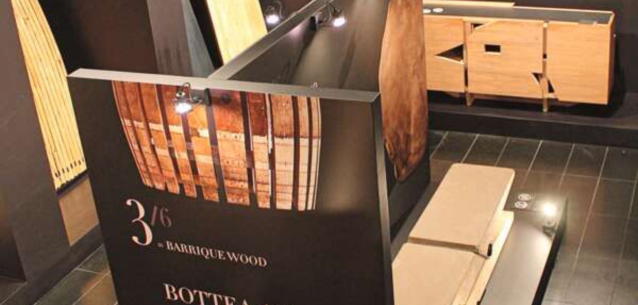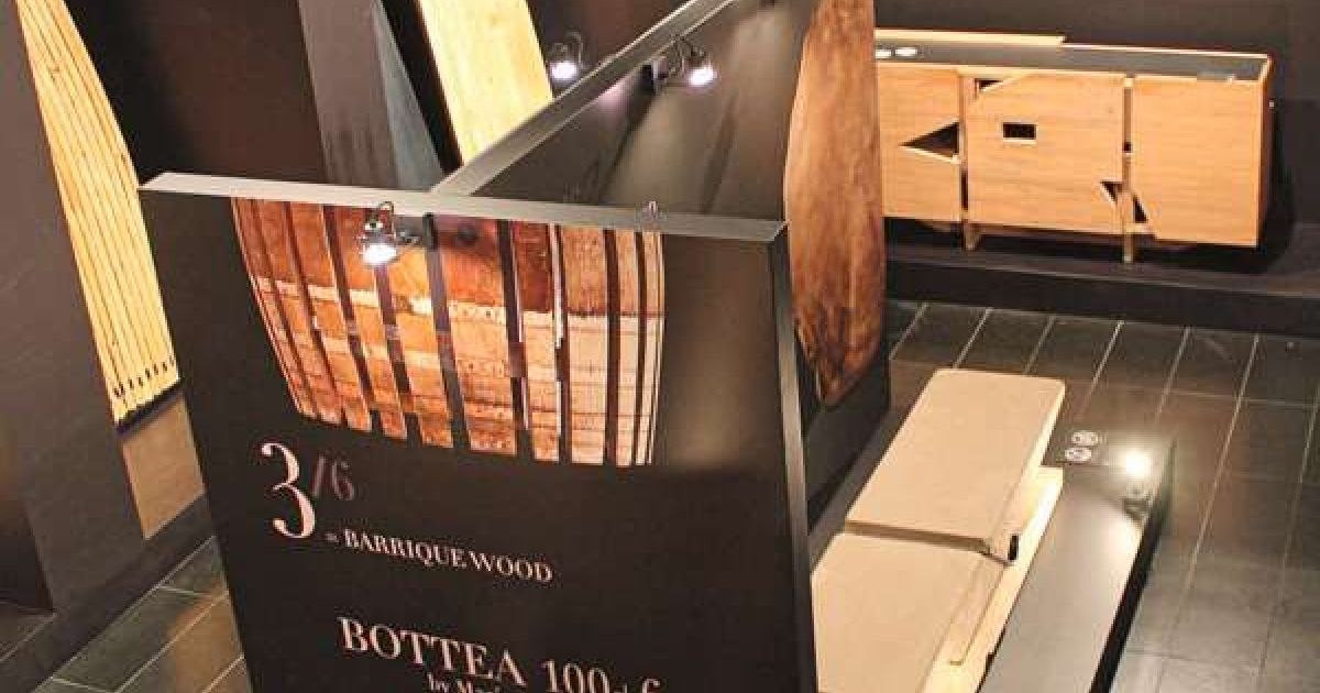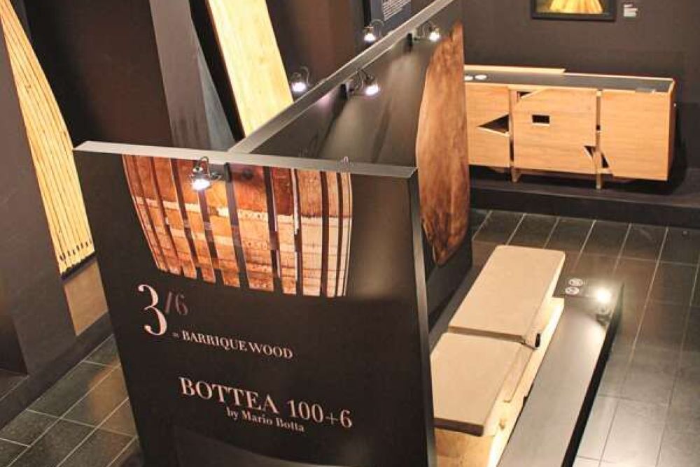 Bottea di Mario Botta per Riva1920, uno sgabello dalle forme geometriche pure in legno di rovere proveniente da barrique. Immagine: Curzio Castelli