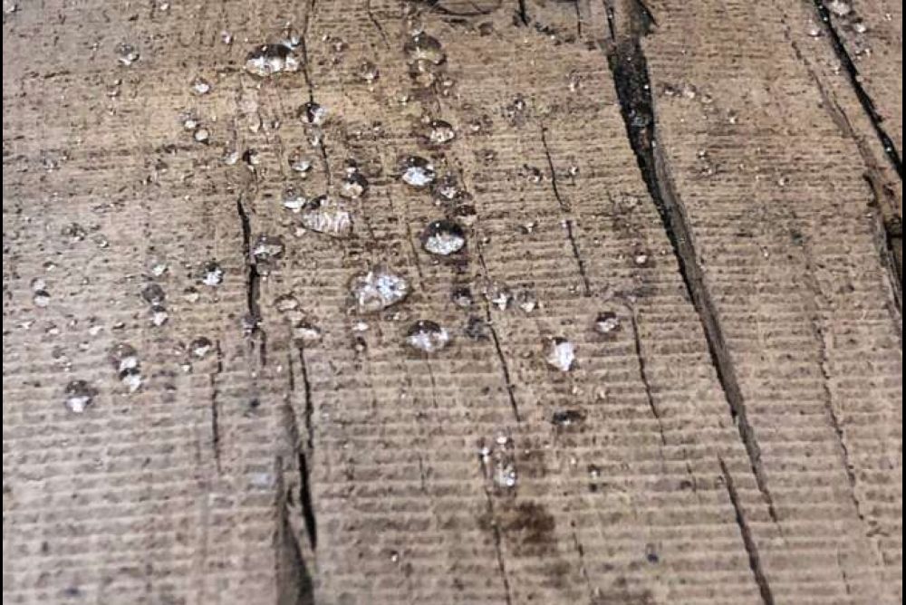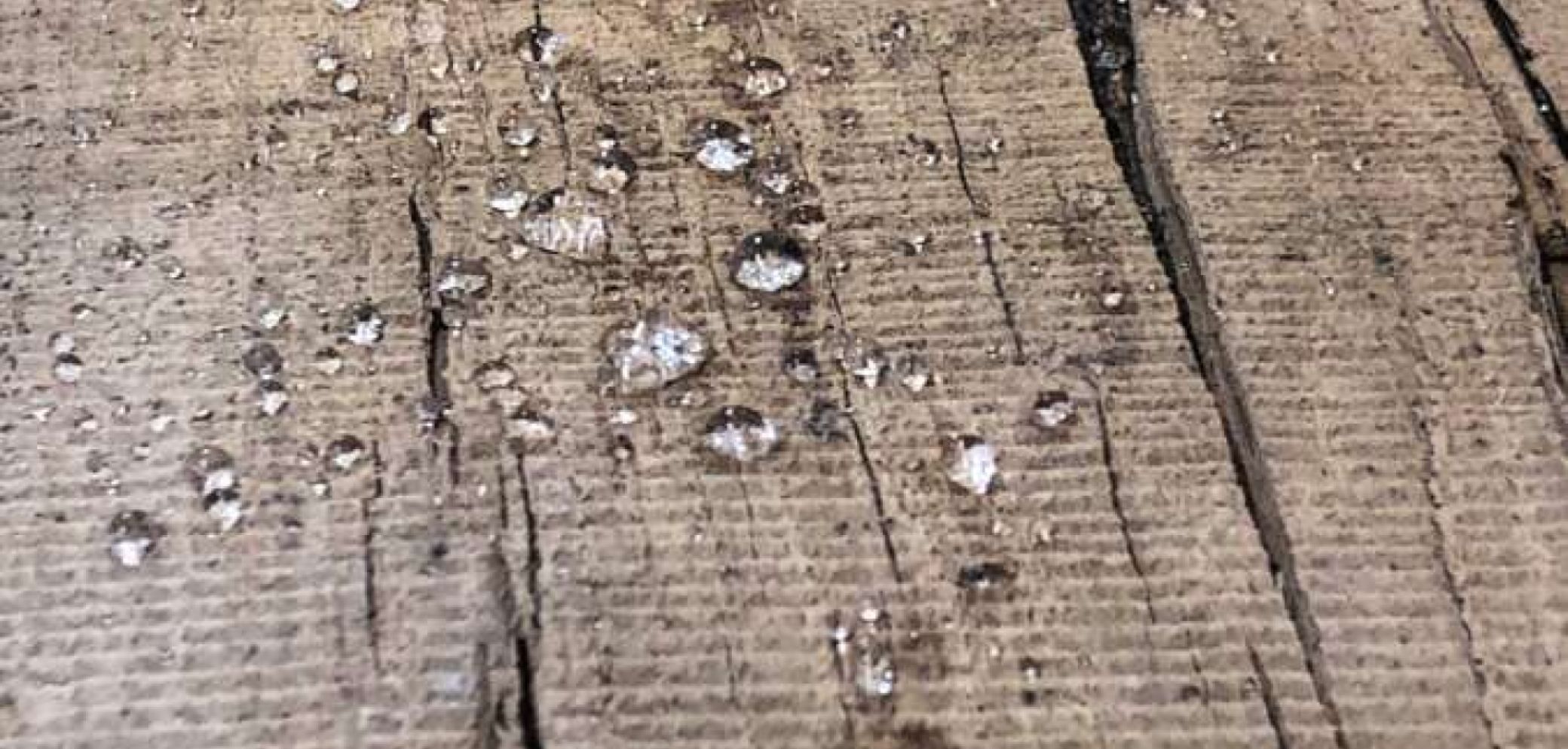 Campione di legno trattato con nanocoating: l’acqua rimane in superficie senza essere assorbita nelle fibre. Immagine: federlegno.ch