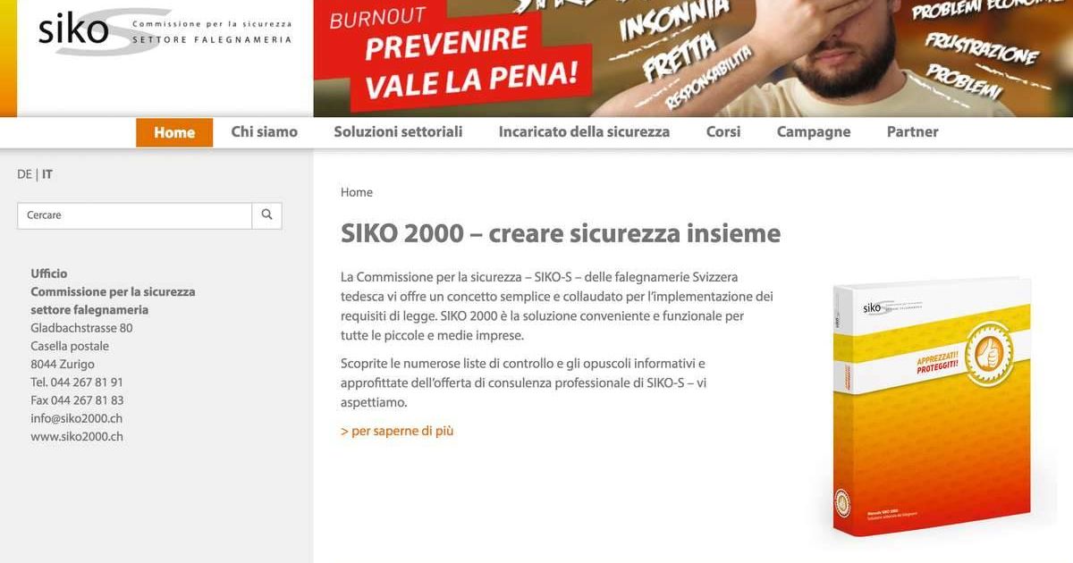 Siko 2000 in italiano. Ogni datore di lavoro che sottostà al CCL nomina per la sua azienda un responsabile per tutte le questioni relative alla sicurezza sul lavoro e alla tutela della salute. Le aziende ticinesi possono adesso far capo al portale anche in lingua italiana.