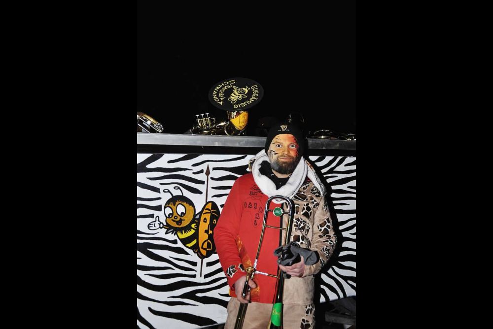 Im «echten» Leben ist Roman Bosshard Schreiner. Während der Fasnacht spielt er Posaune. Bild: Franziska Herren
