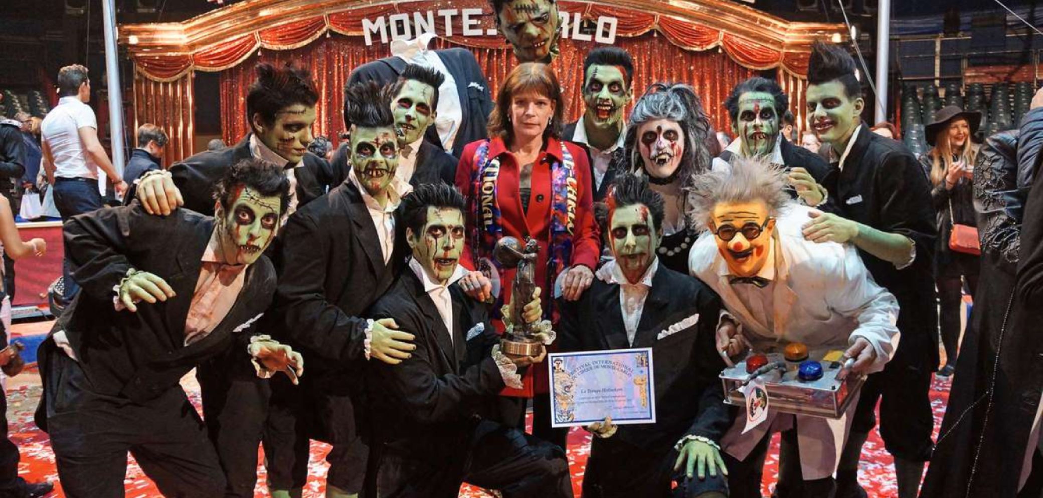 Fototermin mit Prinzessin Stefanie: Thomas Mathis (mit Zertifikat) gewinnt am Zirkusfestival in Monte Carlo mit den «Holmikers» einem bronzenen Clown. Bild: PD