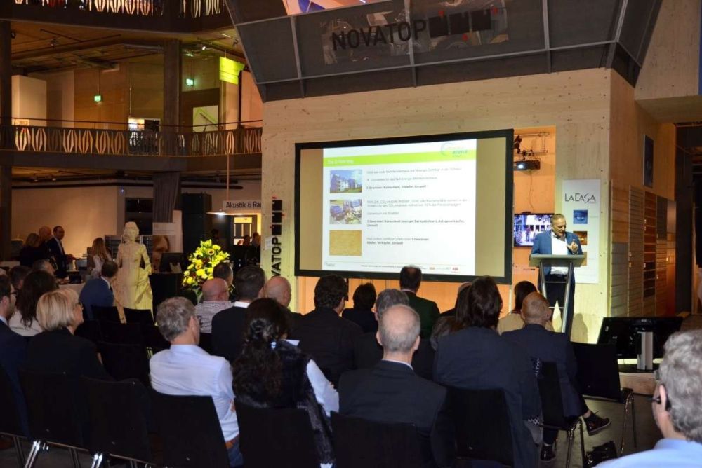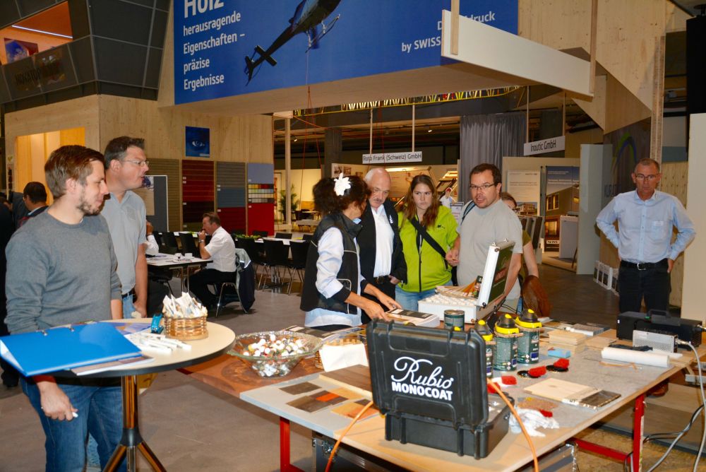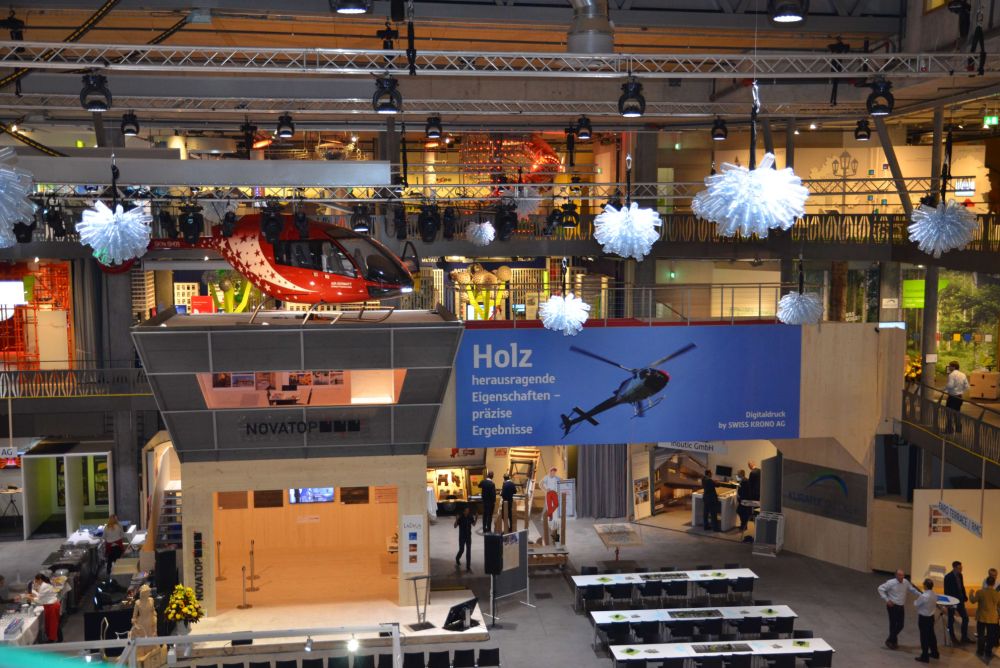 Den Anwesenden wurde einiges geboten. Persönlichkeiten aus Politik, Wirtschaft und den Branchenverbänden erläuterten an täglich stattfinden Gastreferaten, was die Holzbranche bewegt. Ein Hingucker war der Messestand von Kuratle und Jaecker selbst. Sie bauten einen Heliport samt Helikopterattrappe auf dem Dach in der Halle auf, welchen man über eine Brücke erreichte. Brücke und Helikopter standen als Symbole für die herausragenden und präzisen Eigenschaften des Werkstoffes Holz.