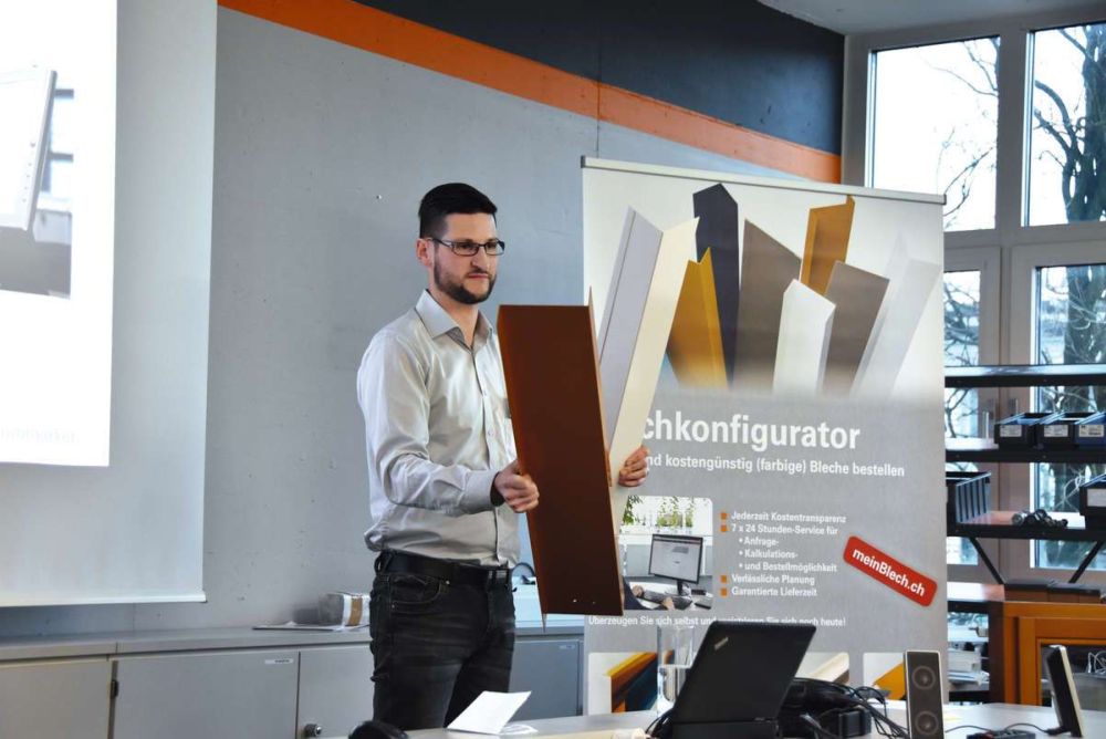 Darüber hinaus erhielten die anwesenden Fachleute Informationen zum Blechkonfigurator, zur Logistiklösung und zum neuen Onlineshop von SFS, der am 12. Februar aufgeschaltet wird. Zusätzlich wurden Motoren für Hebeschiebetüren der Hautau GmbH, Fensterbeschläge der Winkhaus GmbH und Fensterlüftungen von Renson konkret vorgestellt.