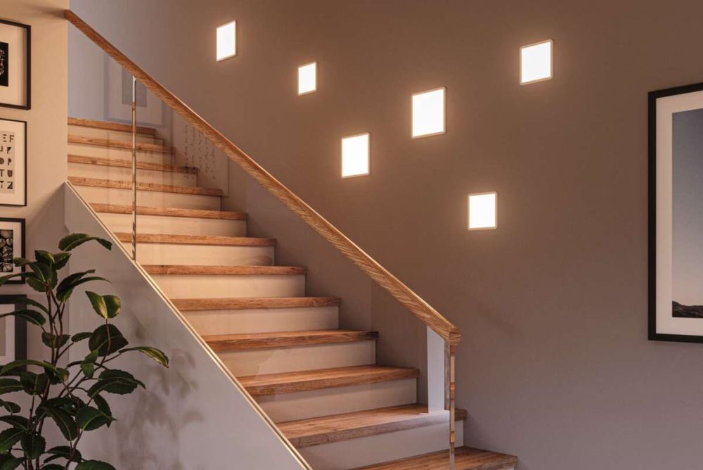 Je nach Deckenausführung oder Bausituation stellen Wand- oder Treppenleuchten eine gute Alternative zur Beleuchtung von oben dar. Die Abstände der einzelnen Wandleuchten sollte so gewählt werden, dass jede Treppenstufe gleichmässig ausgeleuchtet wird und keine störenden Schlagschatten entstehen. Dazu sollten diese im selben Höhenverhältnis angebracht werden wie die Stufen. Besonders bei steilen Treppen, Wendeltreppen oder sonstigen engen Platzverhältnissen ist eine Beleuchtung im Tritt sinnvoll. Hier können beispielsweise kleine Einbauspots oder LED-Streifen direkt unter den Stufen installiert werden und bieten ein hohes Mass an Flexibilität.