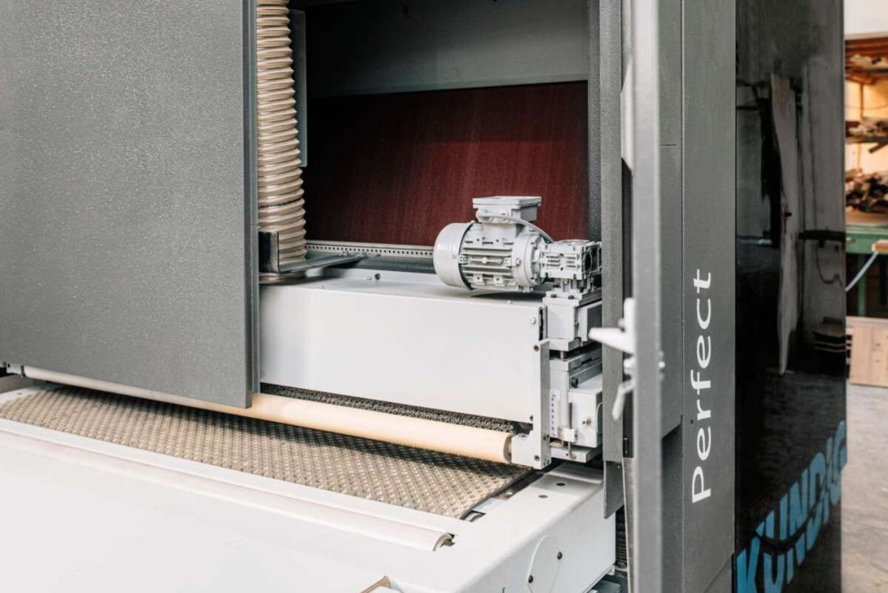Um Aufträge rationeller zu erledigen und damit ein weiteres Mittel zur Einhaltung der Lieferfristen im Köcher zu haben, war der Ersatz der betagten Breitbandschleifmaschine schon länger ein Thema. «Wir hatten einige Fabrikate angeschaut, wussten aber ziemlich schnell, dass es wohl eine Kündig wird», erinnert sich Kröll, der bereits drei Jahre vor dem Kauf ein Angebot für ein älteres Modell des Schweizer Schleifmaschinenherstellers im Haus hatte, welches ihm schon gut zusagte. «Als ich dann etwas später im Netz die ‹Perfect› sah, wusste ich, die ist es. Die ist einfach das Bisserl mehr, das ich haben wollte», sagt Kröll.