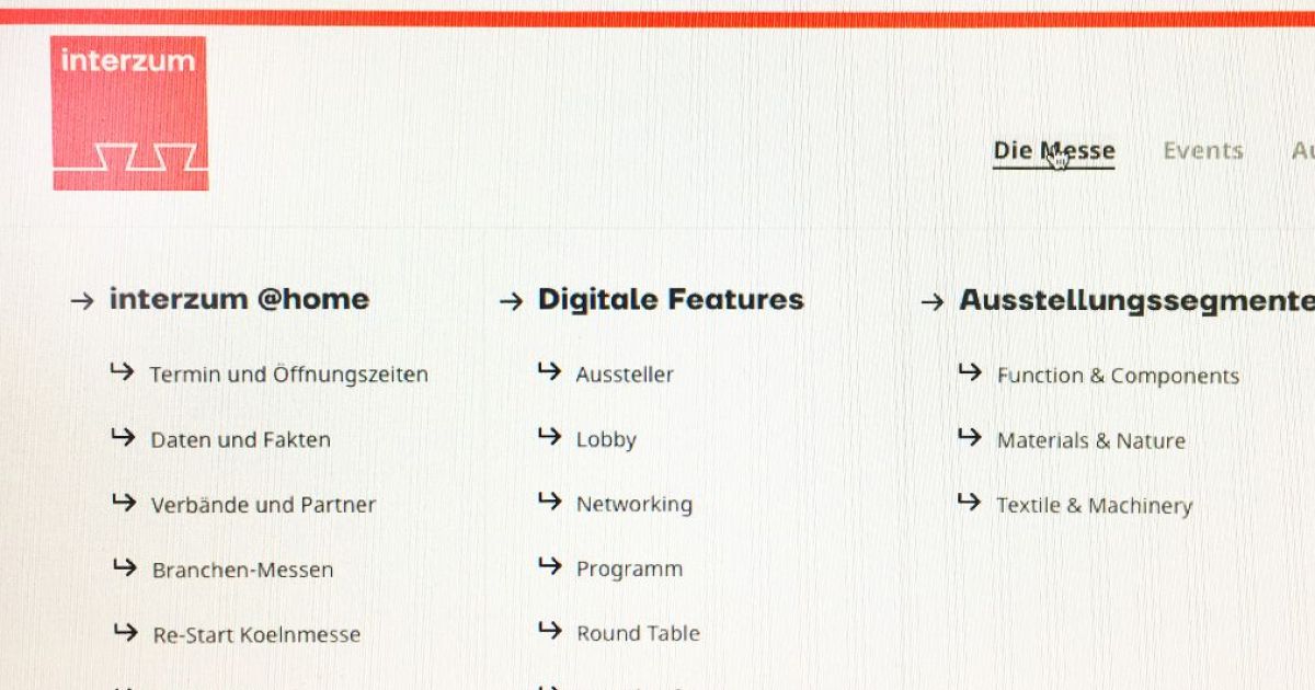 Interzum Online. Heute startet die rein digitale Ausführung der Messe Interzum. Unter dem Namen «interzum @home» wird auf zahleichen virtuellen Bühnen Neues präsentiert und der Austausch gefördert.