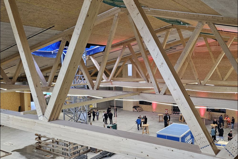 380 Kubikmeter Konstruktionsholz, 5500 Quadratmeter OSB-Platten und 2800 Meter Konterlatten wurden für das neue Werk verbaut, wie Dino Rickenbach in einer kurzen Ansprache verriet. Er leitet das Unternehmen seit 2014 in dritter Generation, dies gemeinsam mit seinem Bruder Remo Rickenbach, seiner Cousine Reta Schürpf-Contratto und seinem Cousin Marco Contratto.