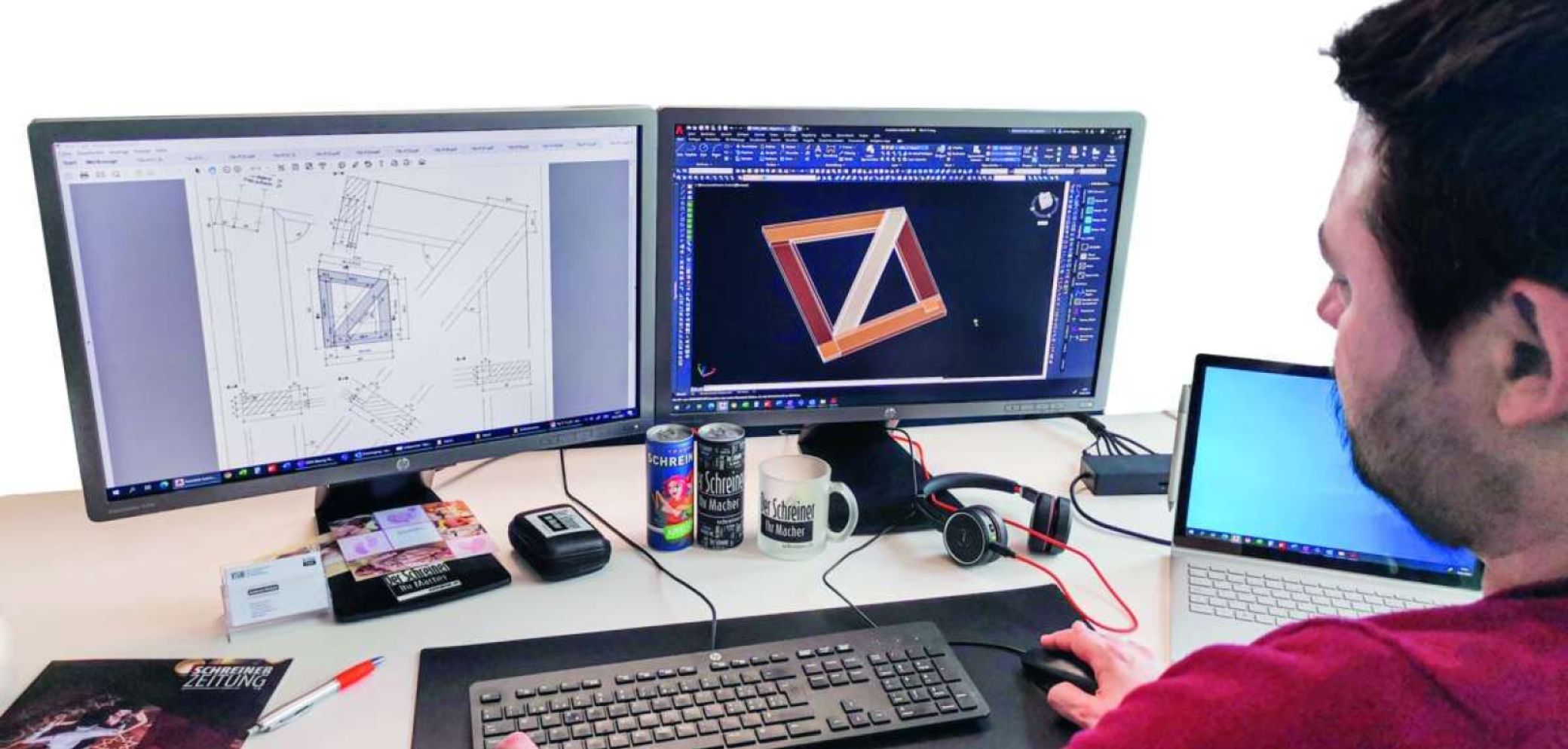 Andreas Steiner, Projektleiter Weiterbildung beim VSSM, skizziert eine erste Version der Aufgaben. «Dann schauen sich alle Subkommissionsmitglieder die Pläne an und geben eine Rückmeldung.» Die Reihenfolge an der Prüfung ist stets die gleiche. «Die Nummer 3 ist zum Beispiel immer ein Rahmenfragment und die 7 eine Kreissägenarbeit. So können die Lernenden den Ablauf üben», sagt er. Bei den Plänen erstellt er jeweils eine verkleinerte Werkzeichnung und die Details zum Reissen. Zudem gibt es immer eine 3D-Abbildung, damit man sich das Objekt vorstellen kann. Beim Konstruieren und Planen sieht er sofort, ob Ideen umsetzbar, zu einfach oder zu schwierig sind. Tendenziell müssten sie vereinfacht werden, sagt er. «Ich zeichne alles in 3D, damit ich Fehler ausmerzen kann und sehe, ob auch wirklich alles zusammenpasst.»