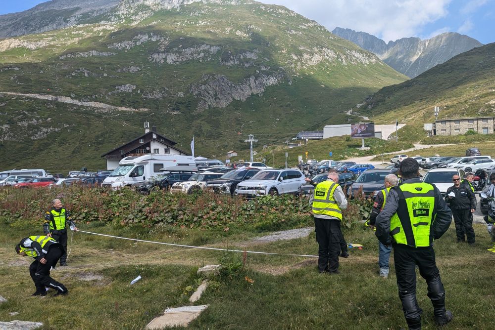 Dann ging's via Grimselpass nach Gletsch und dann über den Furkapass ins kleinste Dorf der Schweiz, Zumdorf bei Hospental. Dort wartete bereits die Cruisergruppe, die auf ihrer gemütlichen Tour via Brunnialp nach Zumdorf gefahren war. Nach dem Mittagessen fuhren beide Gruppen gemeinsam via Andermatt auf den Oberalppass. Hier wurden weitere zwei Wettbewerbe für die Schreiner-Trophy absolviert.