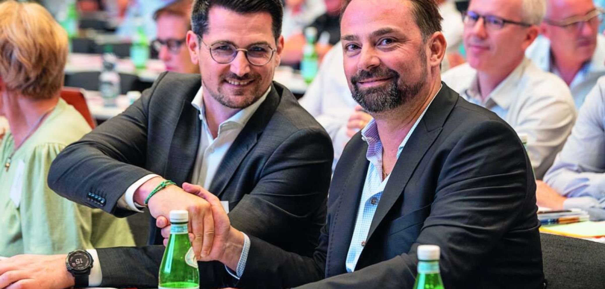 Shakehands bei Michael Jendly (links) und Christian Kälin nach ihrer Wahl in den VSSM-Zentralvorstand. Bild: VSSM