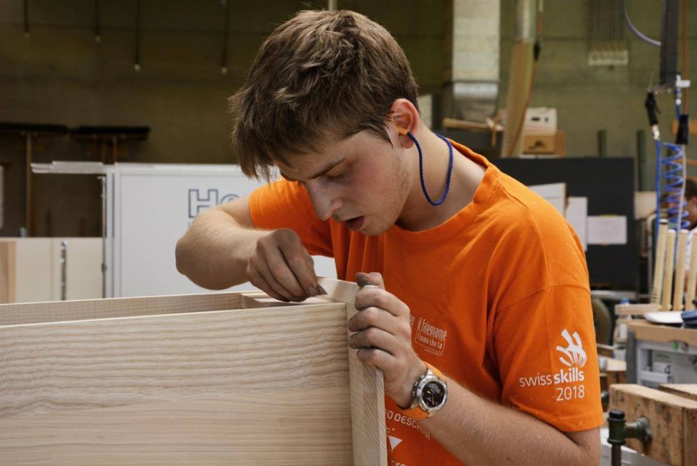 Nach diesem zweiten Qualifikations-Wettkampf der Schreinernationalmannschaft in der Berufsschule Bulle FR gilt Jérémie Droz schon jetzt als Favorit für die WM-Teilnahme 2019 in Kazan, Russland. Der Mann ist schnell, der Mann ist präzise und er quittiert alles mit einem charmanten Lächeln. Jérémie Droz war an der letzten Schweizermeisterschaft bereits Zweiter bei den Möbelschreinern und Dritter bei den Massivholzschreinern. Die WM-Teilnahme verpasste er nur knapp. Diesmal könnte es ihm gelingen.