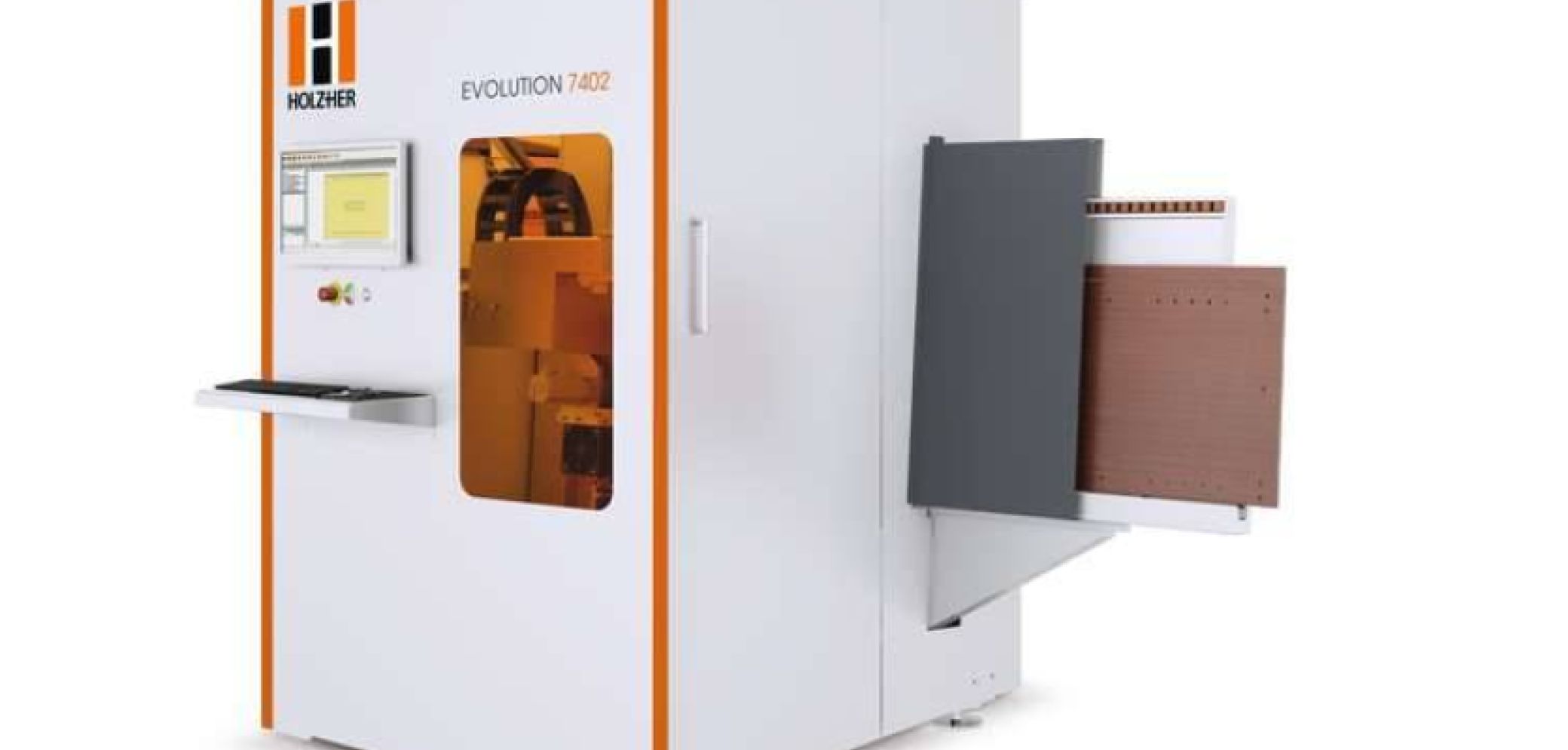 Dank der neuen «Evolution 7402 4mat» von Holz-Her kann jetzt jeder vom vierseitigen Formatieren profitieren. Weil der Werkstücktransport schonend mit Vakuumsaugern erfolgt, kann auch die untere Kante bearbeitet werden. Die «Evolution 7402 4mat» bietet die CNC-Komplettbearbeitung mit geringerem Platzbedarf. Das neue Fräs- und Bohrzentrum ist im Standard mit einer durchzugsstarken 5,6-kW-Spindel bestückt und damit gut ausgerüstet für Ausschnitte und Taschen. Optional lässt sie sich auch mit der 7,5-kW-Spindel mit HSK-Aufnahme ausstatten. Damit sind auf Knopfdruck in Sekundenschnelle Werkzeugwechsel möglich. Für die komplette Bohrbearbeitung steht ein Bohrkopf in Vollausstattung mit 15 Spindeln inklusive Nutsäge zur Verfügung. Mit einem XL-Bohrkopf mit bis zu 22 Spindeln bestückt, kann die Maschine dann eine noch höhere Bohrleistung erreichen.