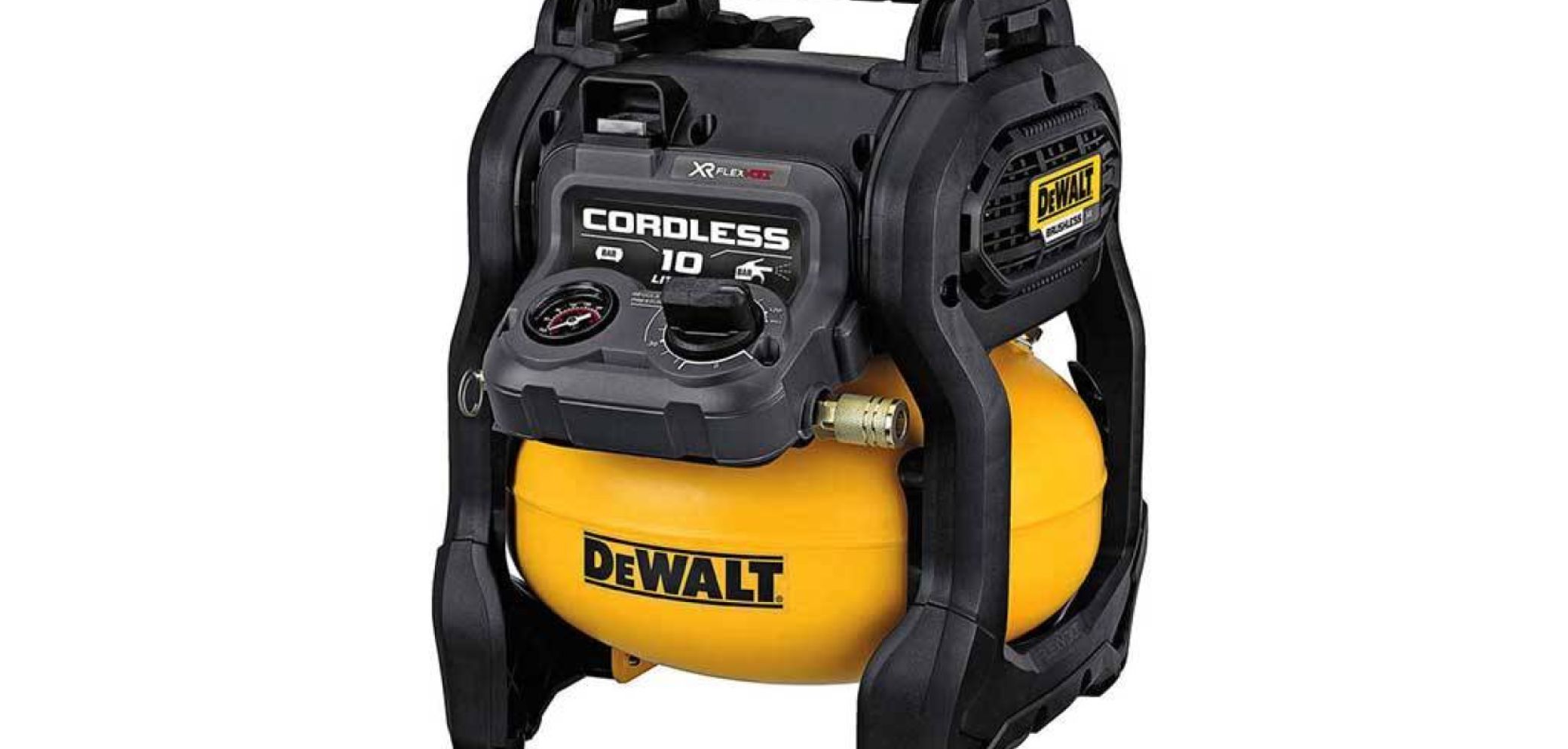 Der 12 kg schwere, kompakte Akku-Kompressor ist als Basisversion ohne Akkus und Ladegerät erhältlich und damit für den Einsatz mit bereits vorhandenen 54-Volt-«XR Flexvolt»-Akkus geeignet.