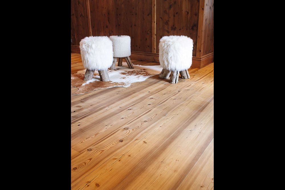 Weit weniger problematisch gestaltet sich die Verwendung von Mehrschichtparkett. Dies hat einerseits mit dem Aufbau zu tun, andererseits aber auch mit dem Hersteller. «Wir kennen unsere Lieferanten aus der Industrie und führen immer wieder Stichproben durch. Nur ganz selten haben Mehrschichtparkette eine Feuchtigkeit von über 7 %», erzählt Jürg Künzler. Generell lässt sich sagen, dass dies auf die meisten Hersteller aus den Alpenregionen zutrifft. Sie sind aufgrund der lokalen Gegebenheiten ohnehin stärker sensibilisiert, was die Feuchteproblematik angeht. Vorsicht geboten ist bei Herstellern aus Fernost oder beispielsweise auch Frankreich. Also überall, wo ganzjährig ein feuchteres Klima herrscht als in der Alpenregion. Denn diese Parkettproduzenten konditionieren ihre Produkte logischerweise für die dort vorherrschenden Klimabedingungen. Nicht unterschätzen darf man ausserdem die Wahl der Holzart. Buche oder Ipé sind bekannt für ihr unruhiges Schwind- und Quellverhalten. Da kommt den Verarbeitern der fortwährende Eichentrend entgegen. Ihr gutmütiges Verhalten macht nicht nur die Verarbeitung einfacher, sondern hat auch erst die grossformatigen, rustikalen Dielen ermöglicht. Beim Mehrschichtparkett empfiehlt Künzler, auch die verwendeten Furniere einmal genauer unter die Lupe zu nehmen: «Messerfurniere zeigen sich eher etwas toleranter gegenüber Klimaschwankungen als Schälfurniere.»