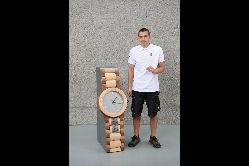 Flavio Zehnder (Hugentobler AG, Braunau) räumte mit seinen «Curved Table» nicht nur den ersten Preis der Hauptkategorie «Fachjury» ab, sondern auch noch in den Kategorien «Schreiner» und «Schreinermeister». Den zweiten Rang belegte Stefan Krüger (Knaus + Berchtold AG, Neukirch an der Thur) mit seiner «E-Gitarre» und die beiden jungen Schreinerinnen Nathalia Hofmann (Kocherhans AG, Kreuzlingen, «dreiteiliges Klapptischchen») und Andrea Bommer (Alois Zehnder Möbelfabrikation Schreiner, Ettenhausen, «Wein-Karussell») teilen sich zusammen den dritten Rang. Den Publikumspreis der Wega-Besucherinnen und Besucher erhielt Tobias Brunner von der Nüssli AG aus Hüttwilen für seine XXL-Armbanduhr.