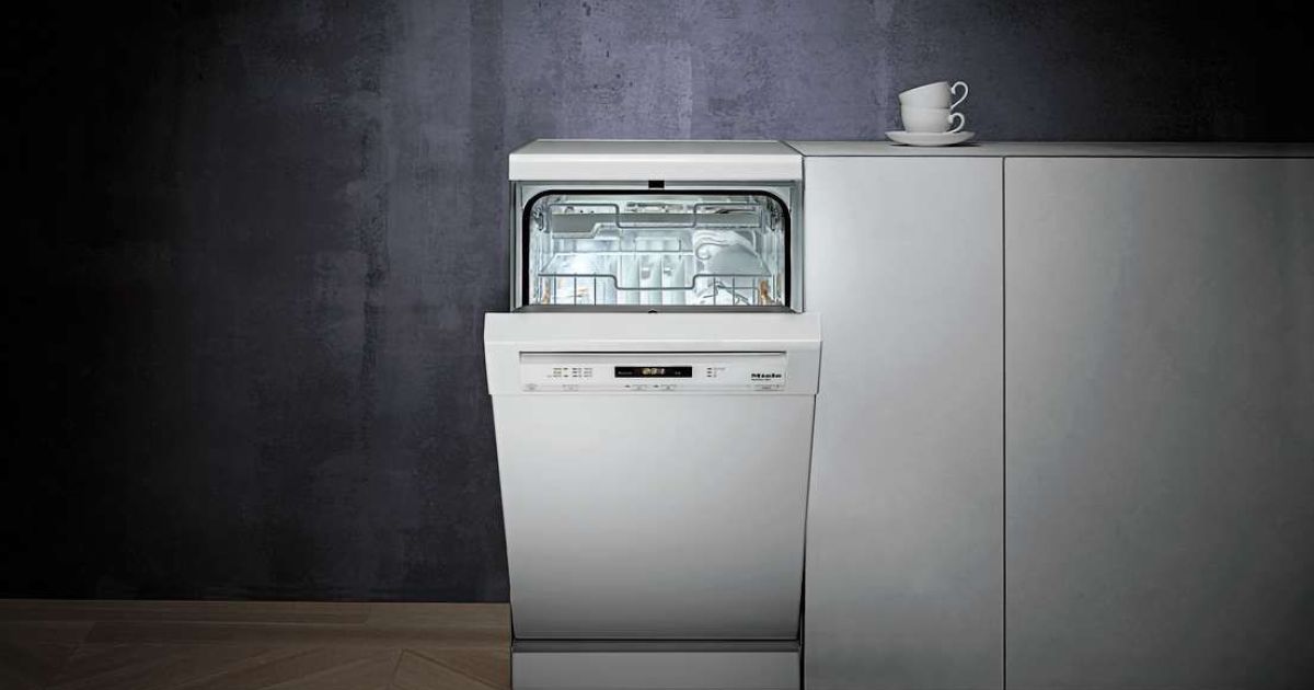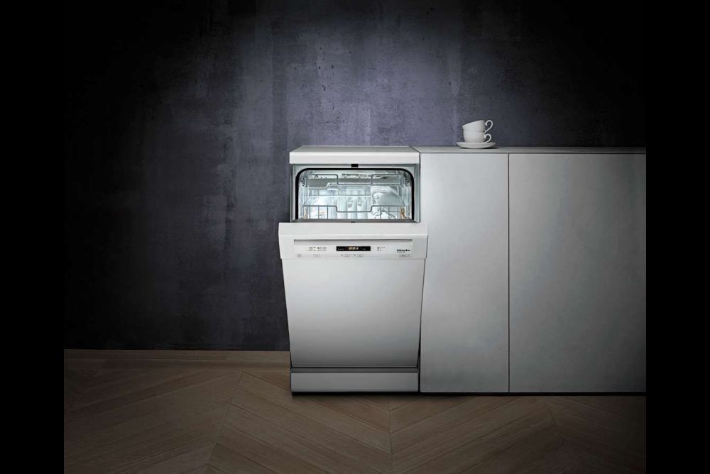 Die 450 mm breiten Geschirrspüler verfügen auch über eine Besteckschublade. Bild: Miele AG