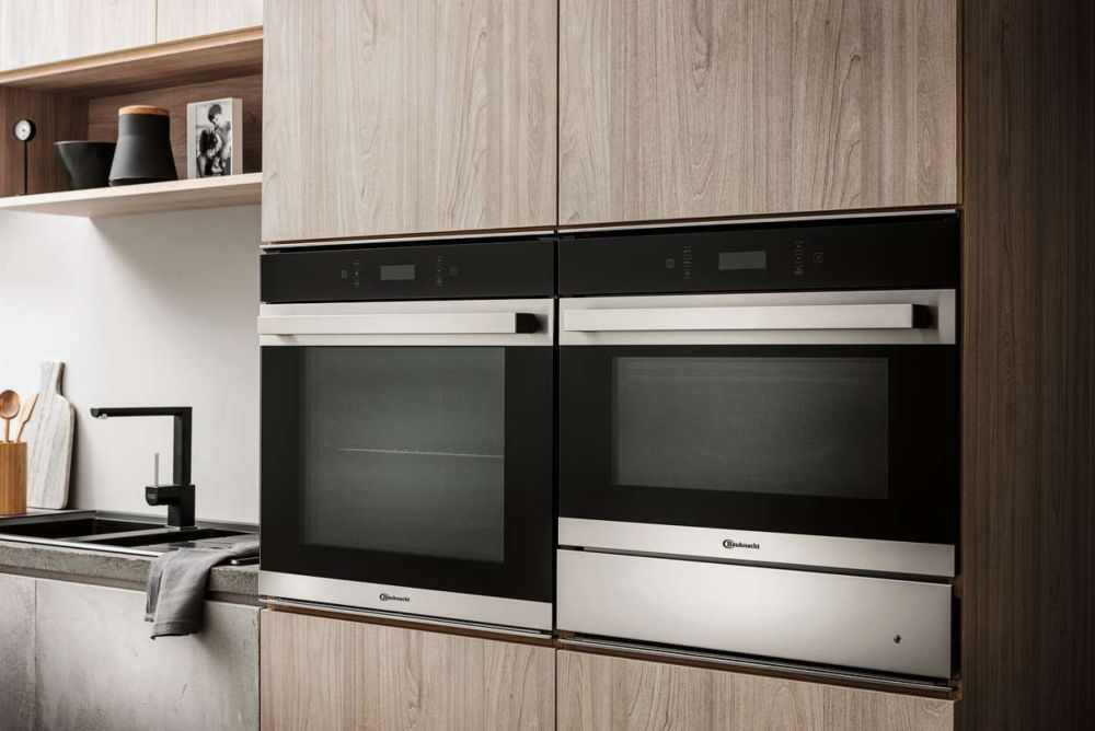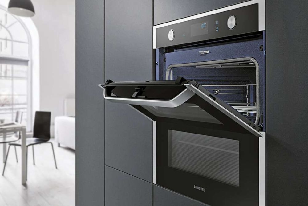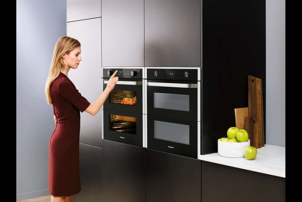 Ein bereits erhältliches Beispiel, wie der Platzbedarf praktisch halbiert werden kann, zeigt Samsung mit dem «Dual Cook Flex»-System. Dieses ermöglicht es, den Backraum eines normalen Backofens horizontal in der Mitte zu unterteilen und somit praktisch die Funktionen von zwei Backöfen zu erhalten. Wird die Funktion gerade nicht gebraucht, kann die Tür auch als Ganzes geöffnet und das Gerät als herkömmlicher Backofen verwendet werden.