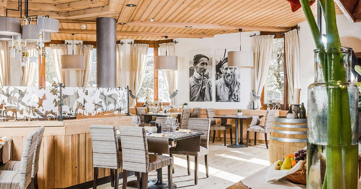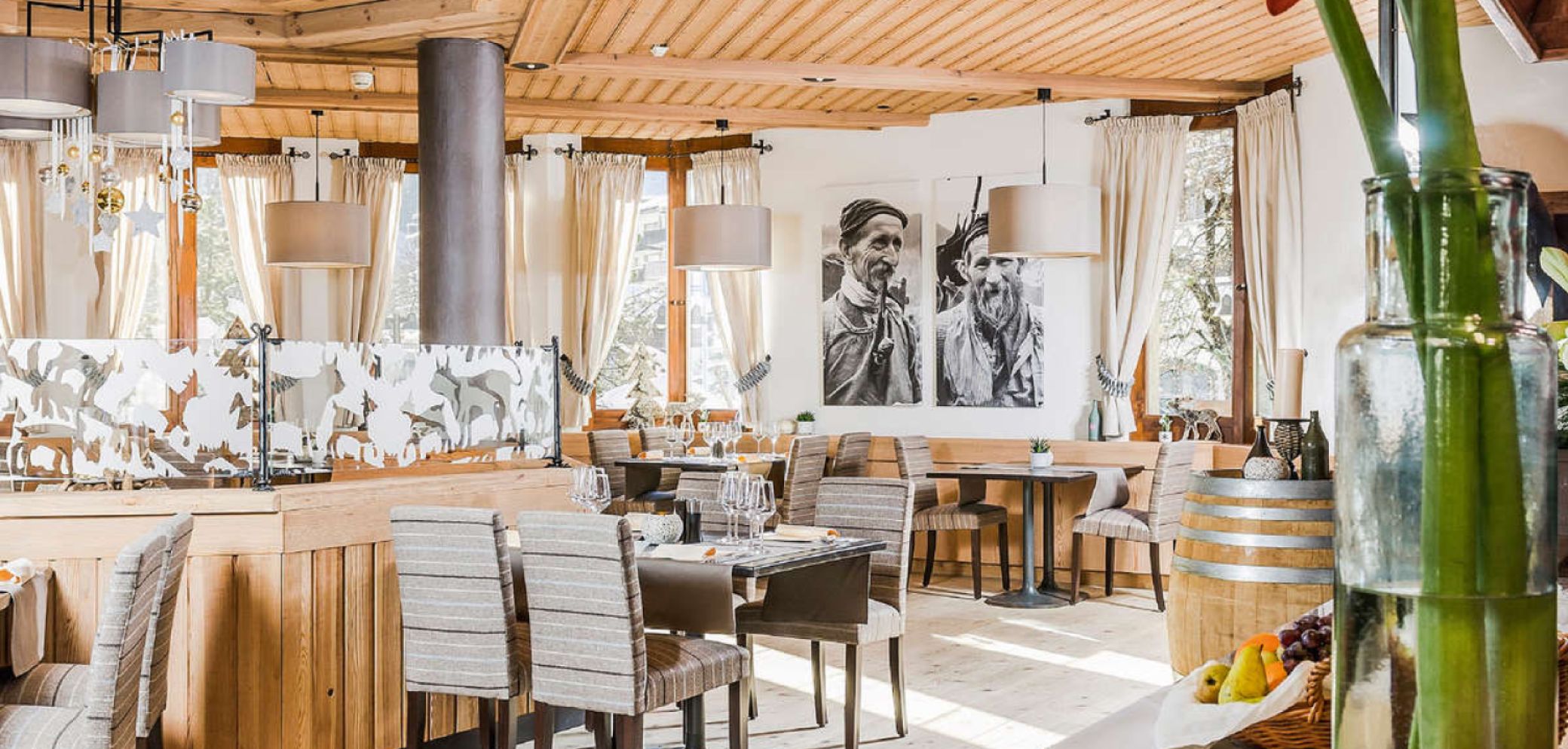Bild: Hotel Piz Buin Im Café Bär’s des Hotels Piz Buin waren 205 m2 Holz transparent lackiert. Nach 130 Stunden CO2-Strahlen mit 5 cm breiter Düse war es wieder hell.