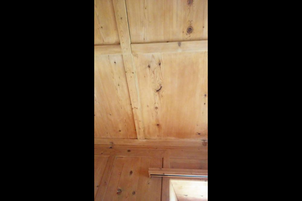 Glasbruch mit zirka 200 Mikron ist für Schreiner das gängigste Strahlmittel, da Glas scharfkantiger, härter und schwerer als etwa Bicarbonat ist. Vor allem auf Hart- und Weichholz erzielt man damit gute Resultate, auch wenn sie deckend gestrichen waren. Stühle oder Fensterläden mit ihren Ritzen und Kanten lassen sich so zügig entschichten. Bei mehrfach gestrichenen Hölzern kann man mit noch abrasiverem Sand beginnen und auf Glasbruch wechseln, wenn man in Richtung Holz kommt. Schreinermeister Duosch Bezzola von Clà Bezzola hat beispielsweise eine mit Arvenholz vertäfelte Stube mit Glasbruch gereinigt. Nach einem Wasserschaden waren Schmutzränder auf dem Holz zurückgeblieben. Damit am Ende wieder alles einheitlich war, strahlte er die gesamte 80 m2 grosse Fläche mit Glasbruch von 80 bis 150 Mikron. Er verwendete dazu eine Feinstrahlanlage der Marke Fatboy der K. Lips AG. Die Düsengrösse war 3 mm, der Druck zirka 4 bar. «Wir haben auch eine kleinere Strahlmaschine», sagt der Fachmann. «Die nehmen wir, wenn wir nur ein Muster machen müssen.»