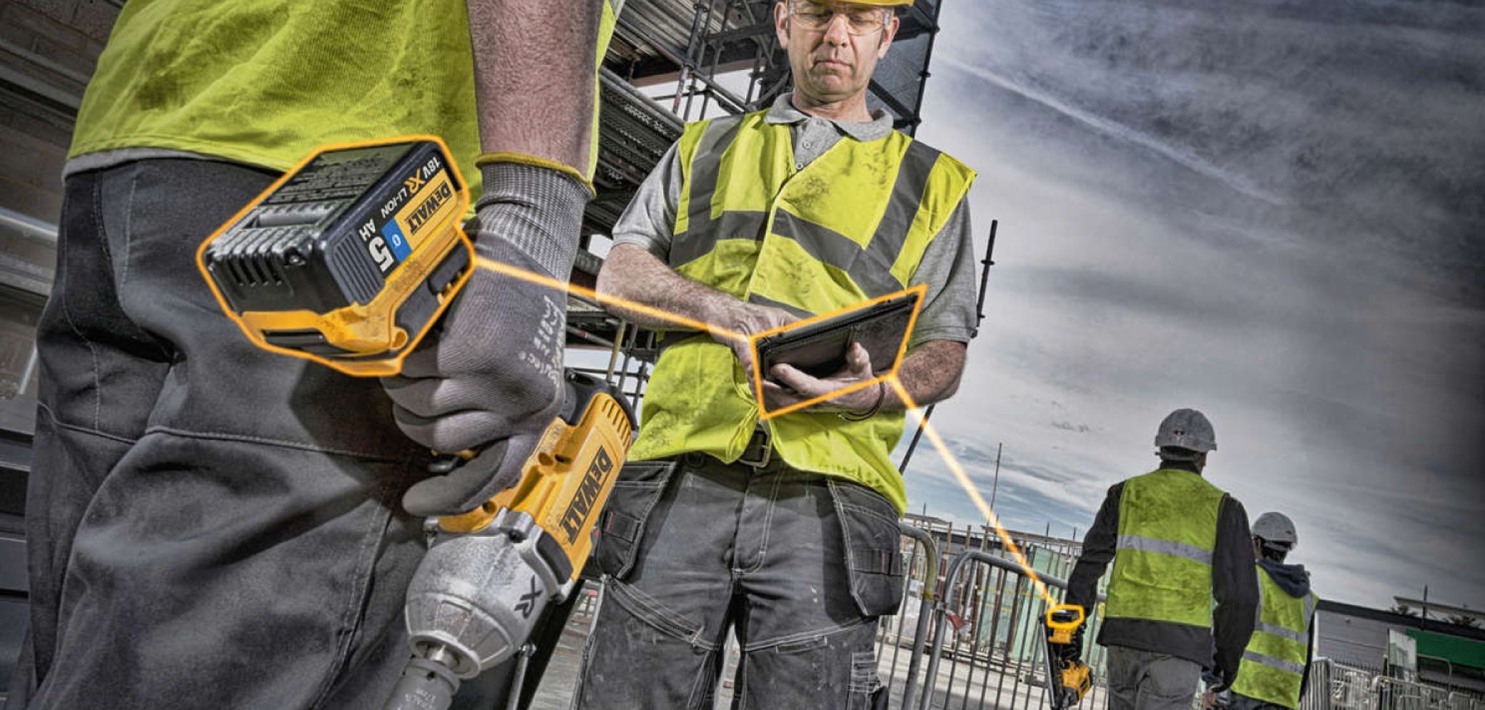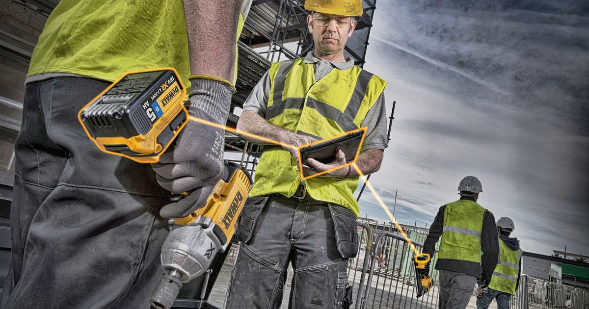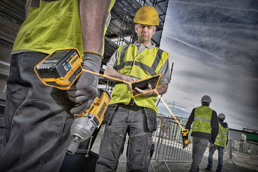Die erhältlichen Akkus «DCB 183 B» mit 2,0 Ah oder «DCB 184 B» mit 5,0 Ah aus der «XR»-Familie können dank des integrierten Bluetooth-Chips und der App «Dewalt Tool Connect» (für Android oder Apple) mit Bluetooth-fähigen Endgeräten wie Smartphone oder Tablet (ab Bluetooth Smart und Bluetooth 4.0) kommunizieren. Nach dem kostenlosen Download der App und dem Anmelden der Akkus lassen sich verschiedene Informationen abrufen. So kann man zum Beispiel sehen, ob sich alle Akkus innerhalb der Reichweite von circa 30 Metern befinden – vor allem am Ende eines Arbeitstages eine praktische Funktion, die sicherstellt, dass keine Batterie auf der Baustelle vergessen wurde.