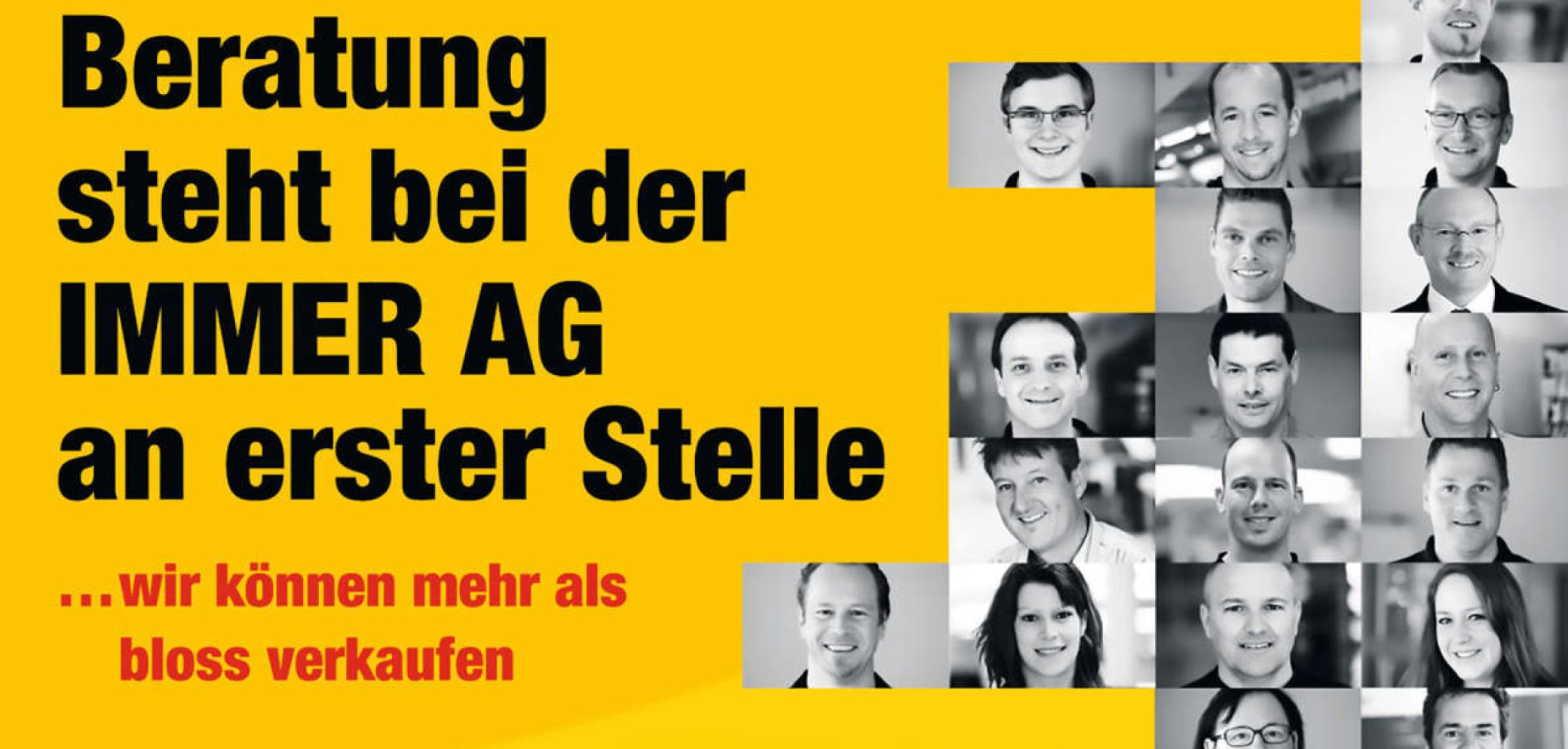 Herausforderungen gemeinsam meistern Eine gute Beratung ist für die IMMER AG zentral. Die Mitarbeiter des Unternehmens nehmen die Anliegen ihrer Kunden ernst und bieten ihnen dank profundem Fachwissen konkrete, auf die Situation zugeschnittene Lösungen an.