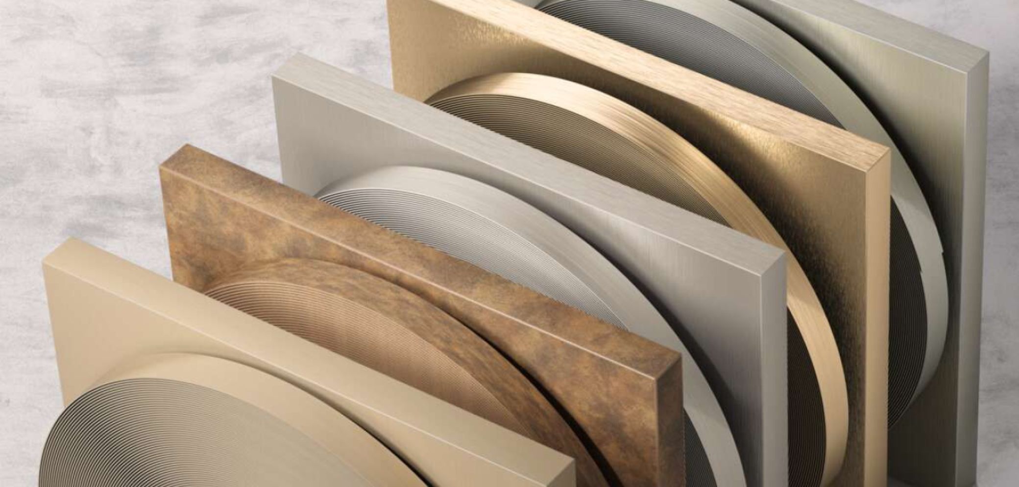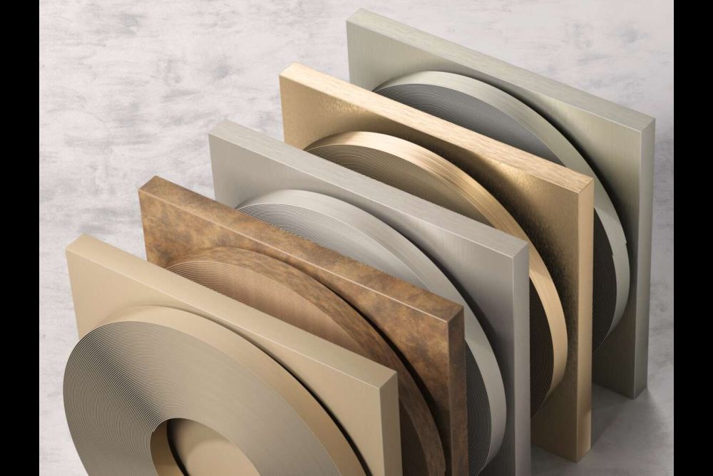Der Anblick goldener Accessoires im Innenraum ist nicht aussergewöhnlich. Künftig wird man die elegante Farbe auch wieder vollflächig am Möbel finden. Für die Abdeckung der Schmalflächen hat Ostermann passende Kanten im Sortiment. Besonders hochwertig sind ABS-Kanten mit Echtmetallauflage. Diese sind genauso leicht zu verarbeiten wie reine ABS-Kanten. Durch eine dünne Auflage aus echtem Metall verfügen sie über eine besonders realistische Optik an der Oberfläche. Aber auch mit dem Werkstoff ABS allein lassen sich sanfte Goldtöne gestalten. Besonders elegant wirken goldene Akzente an anthrazitgrauen oder schwarzen Uniplatten. Dabei spielt es keine Rolle, ob man sie mit glänzenden oder extrem matten Oberflächen kombiniert. Hier sind allein der Geschmack des Kunden und natürlich das Ambiente, in dem das Möbel zukünftig steht, ausschlaggebend.