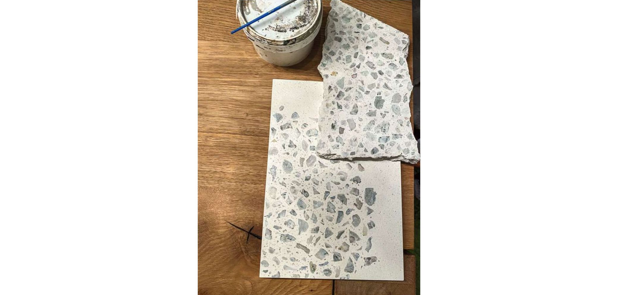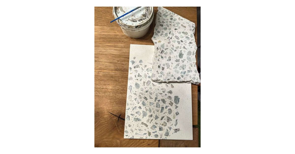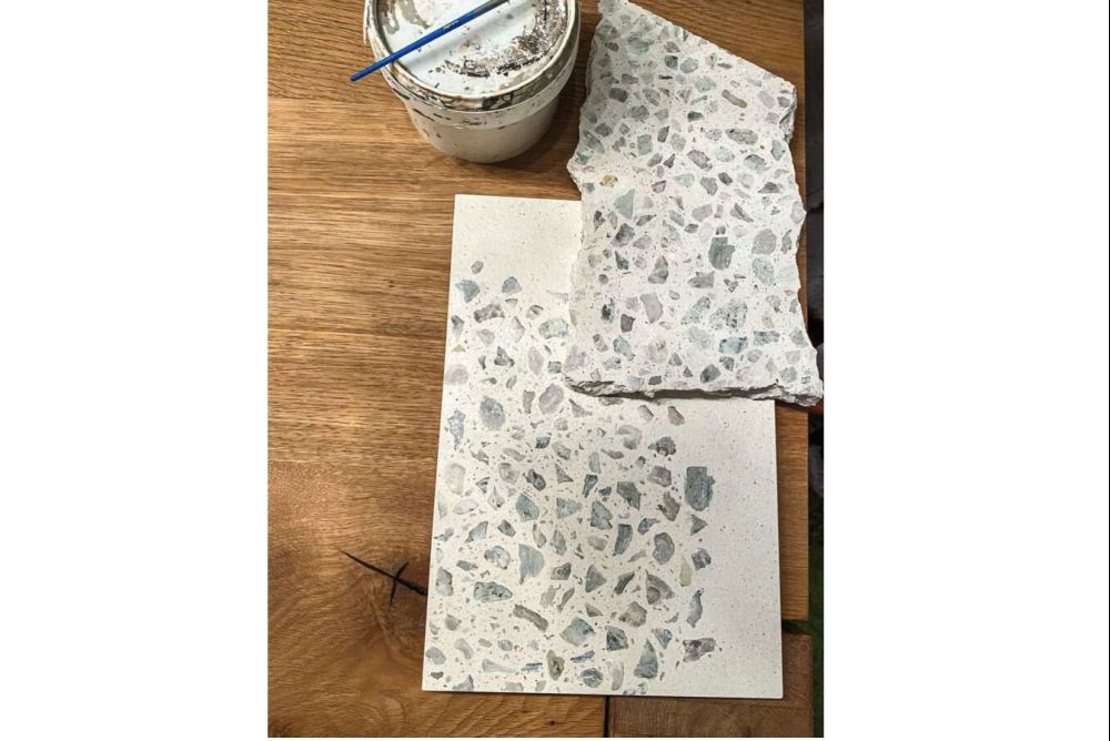 Der Zeitaufwand zum Mischen der Farben ist der am schwierigsten einzuschätzende Faktor bei Turjanciks Arbeit. Je nach Untergrund braucht es schliesslich auch nicht nur eine Farbe, sondern gleich mehrere. Beispielsweise bei einem Terrazzobodenbelag, der aus einzelnen und oftmals verschiedenfarbigen Steinchen besteht.