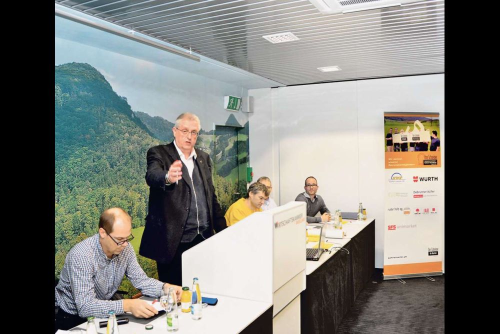 David Gysin, im SMVBL-Vorstand für das Ressort Aus- und Weiterbildung zuständig, informierte seine Berufskollegen über den Verbandsauftritt an der Berufsschau in Liestal. Gegen 600 Schülerinnen und Schüler produzierten ein «Handybänkli», füllten einen Fragebogen aus und versuchten, verschiedene Holzarten zu erkennen.