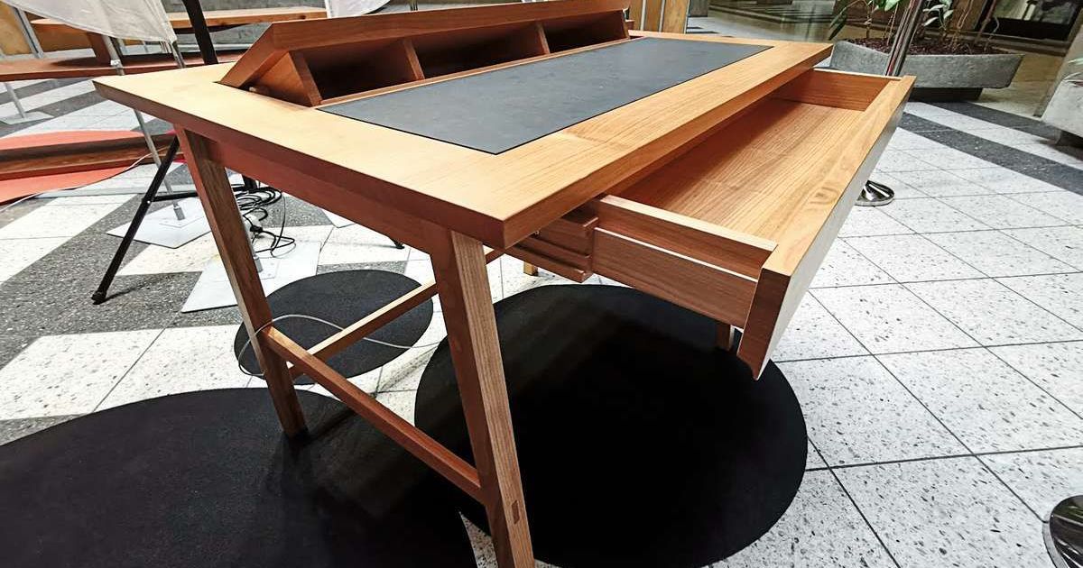 Möbelausstellung. In der Baugewerblichen Berufsschule in Zürich wurden vor den Sommerferien vier Individuelle Praktische Arbeiten von Schreinern ausgestellt. Darunter war jene von Simon Gebhardt und Fynn Martens: ein Töggelikasten und ein Schreibtisch.