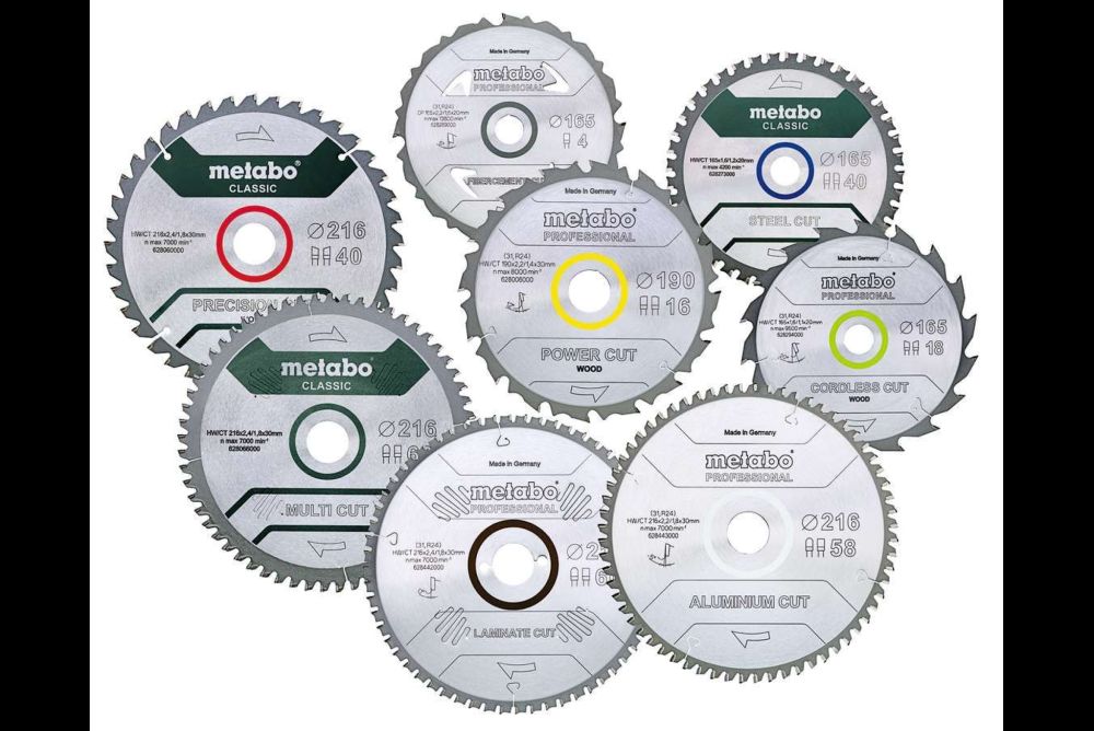 Bei Kreissägeblättern ist die Zahngeometrie und die Auswahl des richtigen Hartmetalls entscheidend, nur so gelingen optimale Schnittergebnisse. Im Hinblick auf künftige Sortimentserweiterungen bei den Maschinen deckt Metabo bereits jetzt das volle Spektrum an Sägeblättern ab. Und weil man in diesem Fall vor lauter Blättern bald den Wald nicht mehr sehen kann, kennzeichnet ein Farbring auf dem Sägeblatt und der Verpackung, für welchen Werkstoff es geeignet ist.