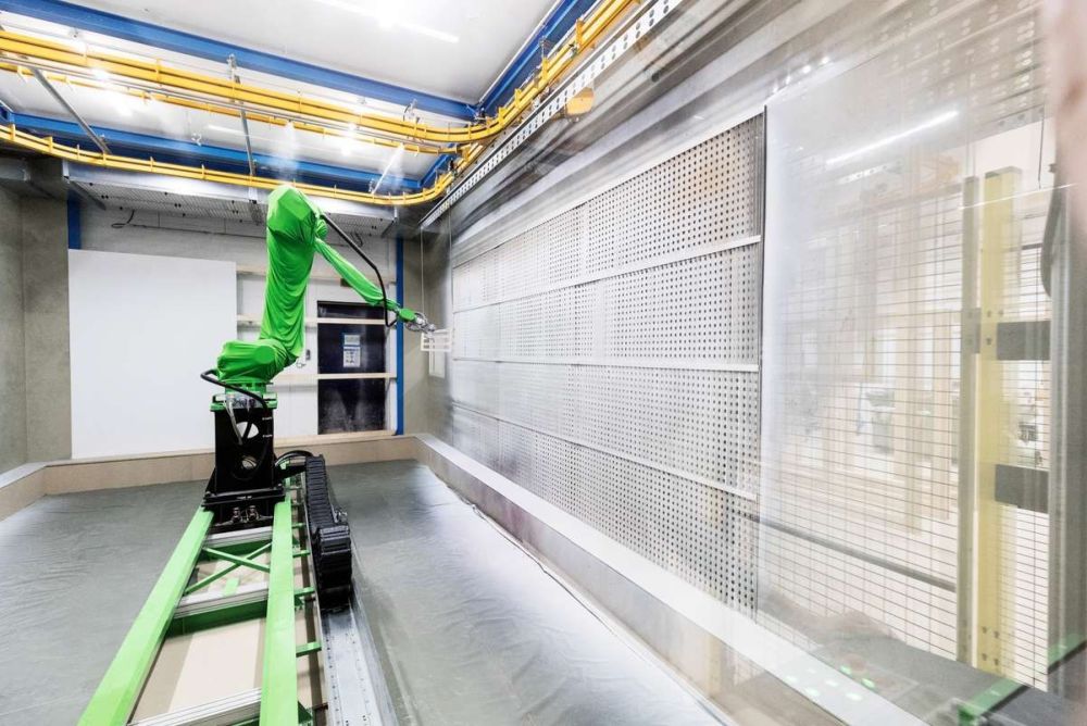Ausgestattet ist der neue Spritzstand mit zwei Spritzwänden, die über Trockenfilterabscheidesysteme verfügen. Dem Spritzstand nachgeschaltet ist der Abdunstbereich mit einer Hochdruckbefeuchtung. Im Trocknerbereich sorgen Axialventilatoren für eine gleichmässige Luftbewegung.