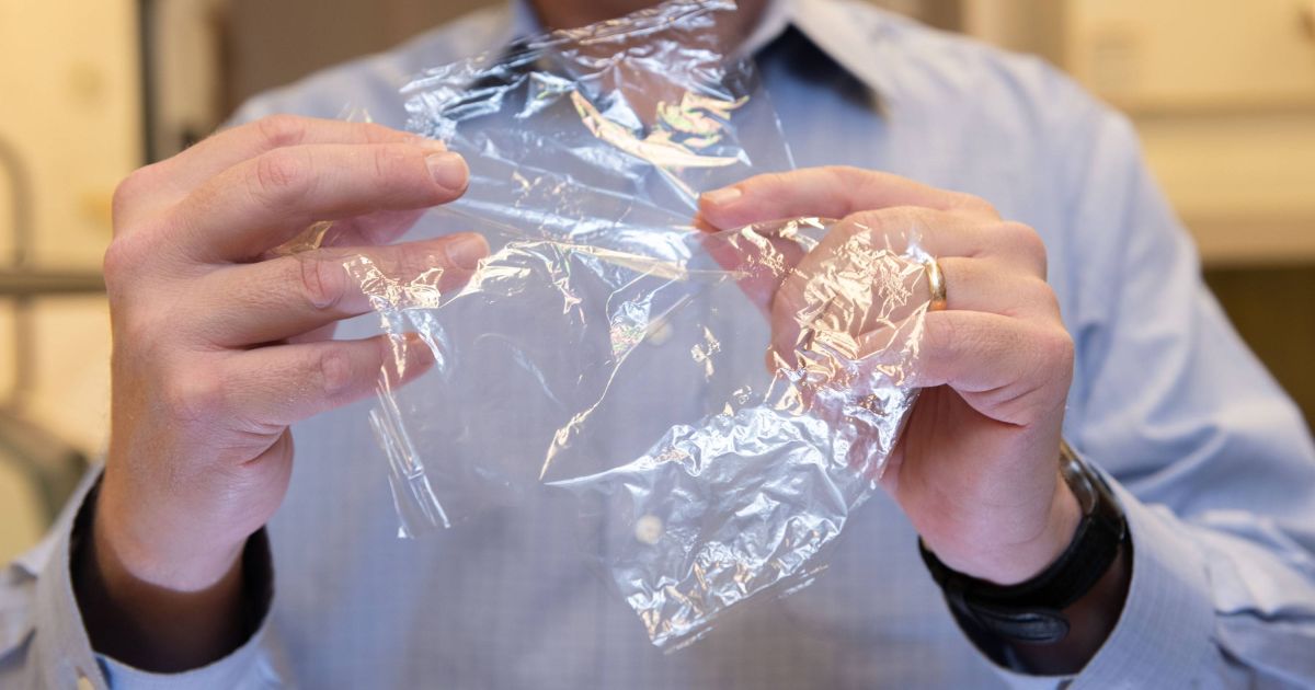 Sieht aus wie Plastik, ist es aber nicht. Die Chitin-Zellulose-Folie. Bild: Allison Carter