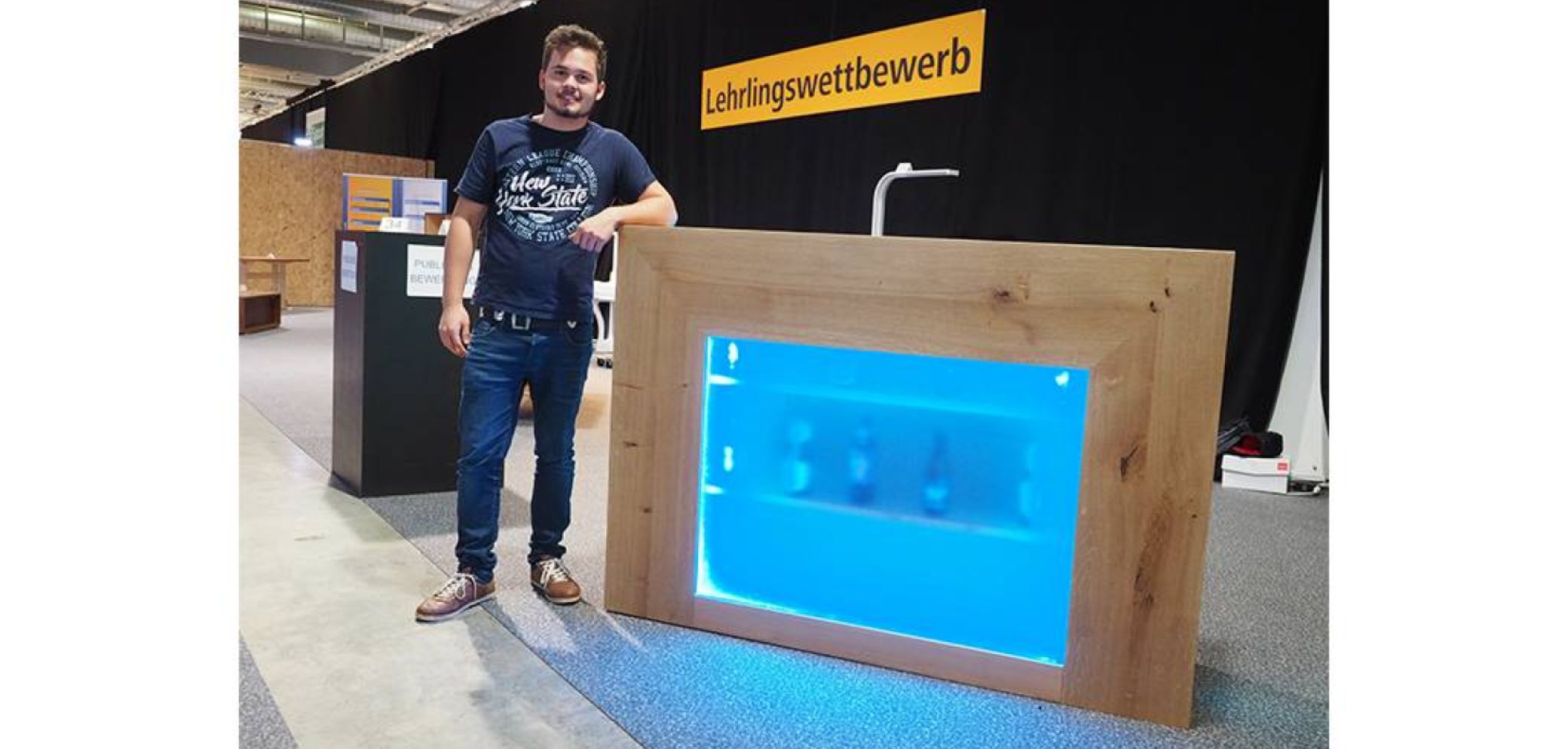 Den Entscheid, welches das schönste Möbel ist, wurde dem Messepublikum überlassen. Die Besucherinnen und Besucher waren überwältigt von der Kreativität der Lernenden und brachten ihre Begeisterung spontan zum Ausdruck. Es fiel ihnen nicht einfach, einen Gewinner zu bestimmen. Am Schluss schwang dann doch ein Sieger oben aus: Die spezielle Bar von Samuel Oberholzer erhielt am meisten Publikumsstimmen. Er absolviert derzeit sein 2. Lehrjahr bei der Schwitter Schreinerei AG in Engelburg.