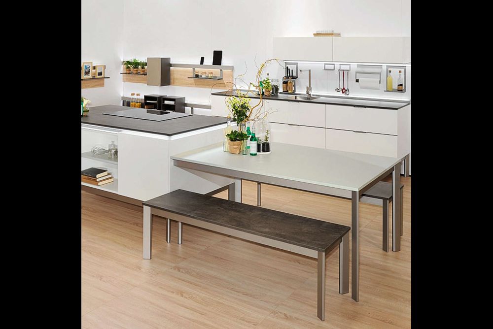 Mit dem Gestellsystem «Cone» präsentiert Schüco Alu Competence ein designorientiertes Tisch- und Banksystem, das auch als Sideboardunterbau eingesetzt werden kann. Mit der auffälligen Profilgeometrie und einer schwebenden Optik bereichert das System die Raumarchitektur. Die Verbindungstechnik ist durch die verdeckt liegenden Beschläge nicht sichtbar. Zudem werden die Seitenteile des Gestellsystems komplett vormontiert geliefert und begünstigen so einen einfachen und schnellen Aufbau. Die Variante als Ansatztisch rundet das System ab.