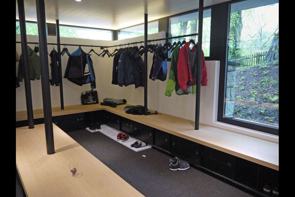 Die Schwitter Schreinerei AG aus Engelburg war vor allem im Bereich der Türen und Einbauten tätig. Im Untergeschoss verlangte die Garderobe einige Kniffe.