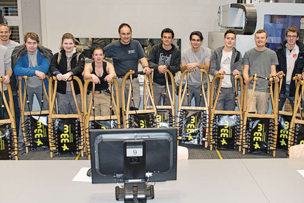 Im Kurs konnte jeder Teilnehmer einen eigenen Rodel bauen. An den zwei ersten Abenden im Ausbildungszentrum Schreiner in Oberohringen führten sie Vorbereitungsarbeiten aus. Dazu gehörte auch die Vermittlung des theoretischen Grundwissens zur Schlittenkonstruktion und zur Verformung. Unter der Leitung von Benjamin Hardmeier und René Metzger gelangten konventionelle Techniken und auch die CNC-Maschine zum Einsatz.