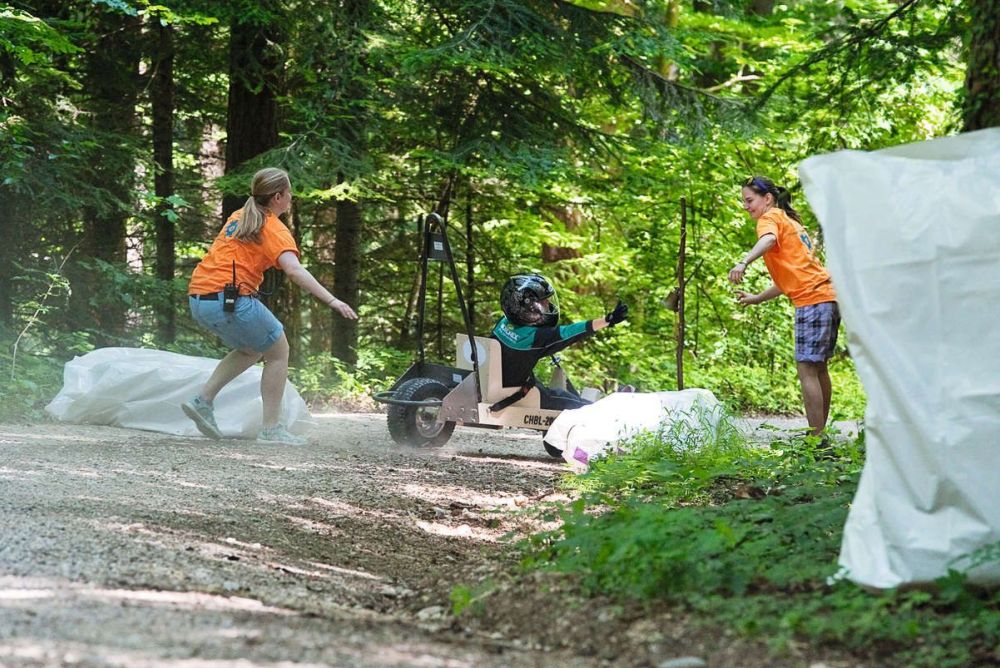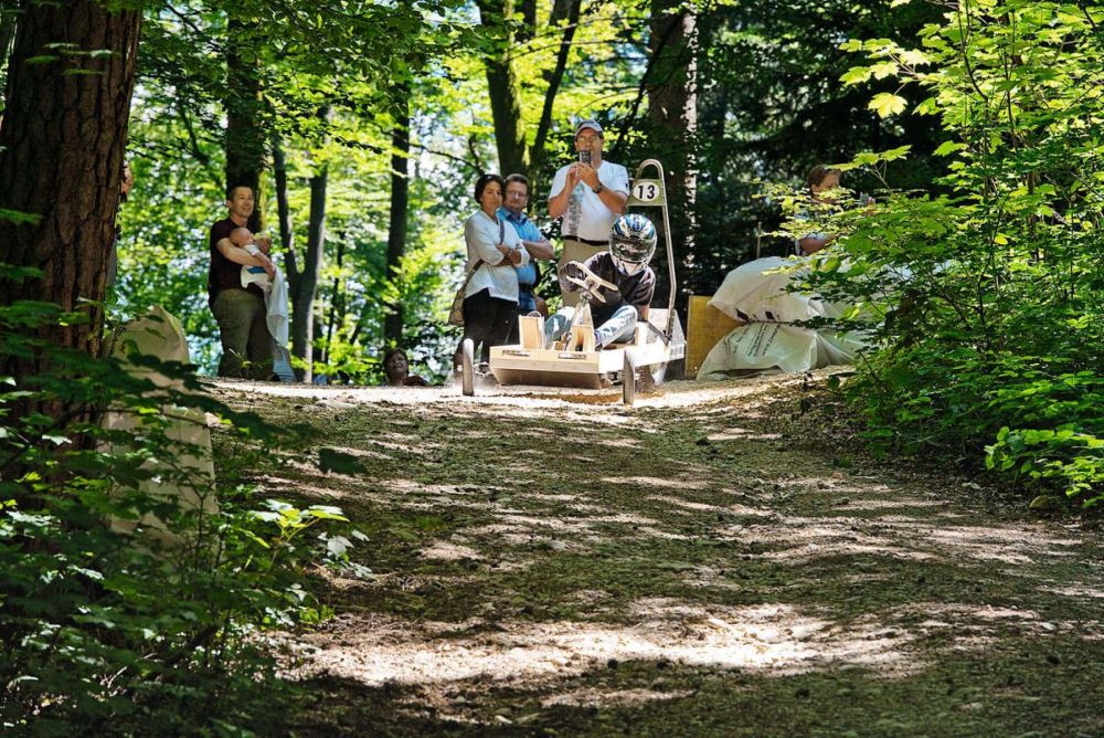 Der Höhepunkt der Projektwoche war das Abschlussrennen am Samstag. Bei schönstem Sommerwetter brachten die Kinder ihre Waldfäger in Stellung. Die Coaches und Familien der Rennpiloten warteten gebannt auf den Start. Die Kinder rollten aber nicht in der Gruppe die Waldstrasse hinunter, sondern einzeln. Und nicht der schnellste Fahrer gewann, sondern jener, der in zwei Durchläufen die kleinste Zeitdifferenz aufwies. Gewonnen haben am Schluss aber dann alle. Jedes Kind konnte seine Seifenkiste, einen kleinen Preis und einen grossen Rucksack an Berufseindrücken und Erlebnissen mit nach Hause bringen.