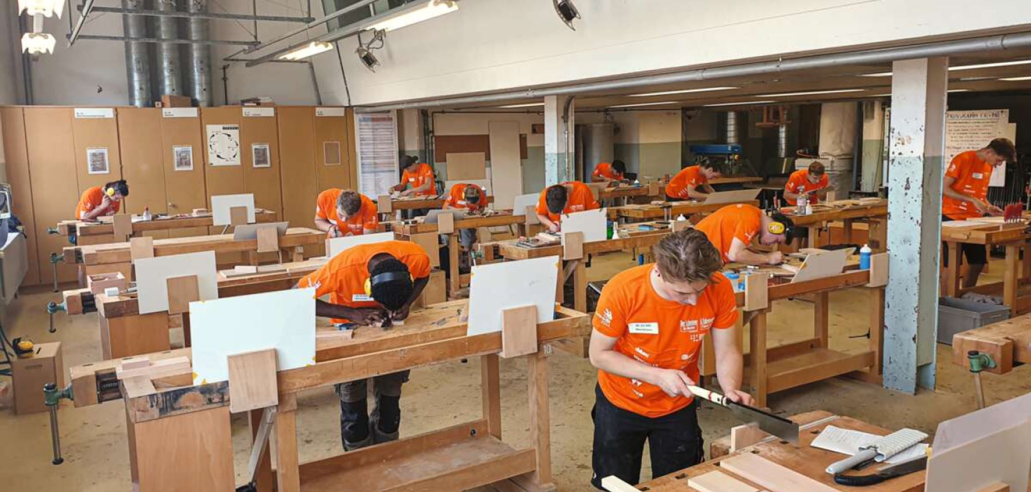 Unter Zeitdruck und nur mit Handwerkzeug bauten 80 Lernende am Berner-Cup einen Hocker aus Massivholz. Die beste Leistung zeigte Noelle Aeschlimann, die sich schliesslich den Sieg sicherte.