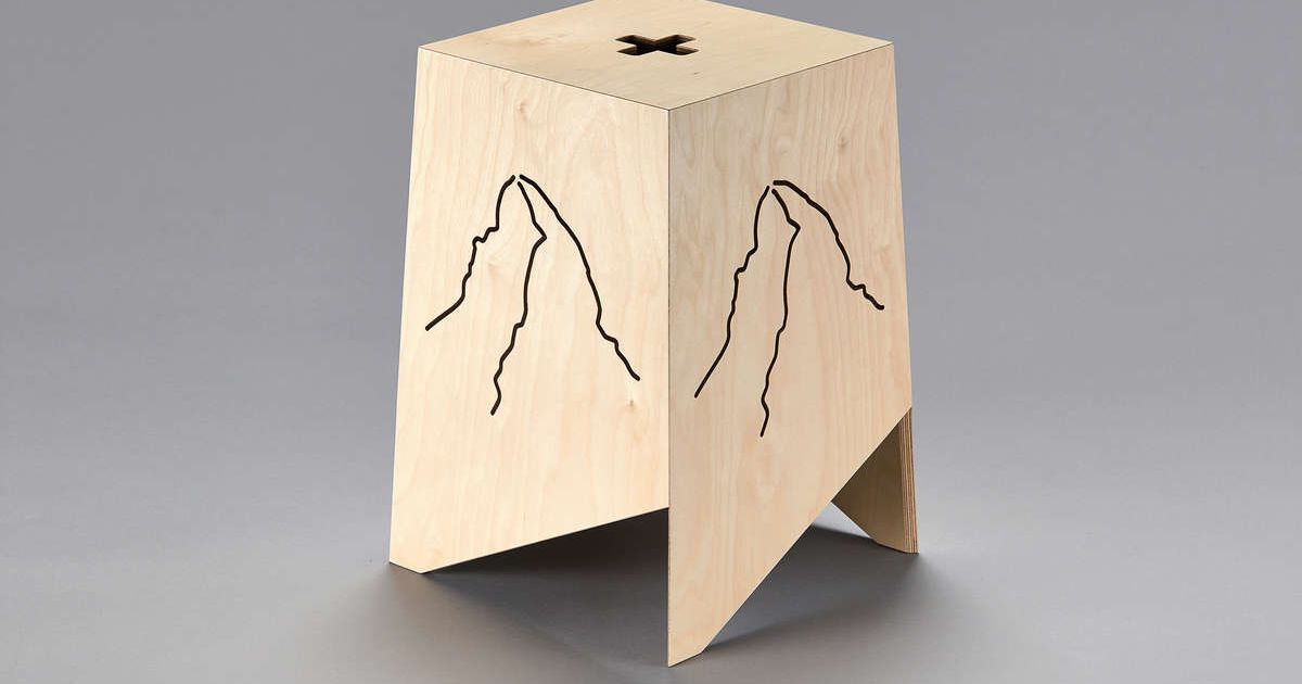 Der multifunktionale Hocker «Horu» zeigt seine Schweizer Herkunft. «Horu» bedeutet Matterhorn, dessen Kontur in die Flächen gefräst wurden. Mit einer Glühbirne hinterleuchtet wird schnell klar, dass die Konstruktion aus 9 mm dickem Birkensperrholz nicht nur Hocker oder Beistell-/Nachttisch ist, sondern auch ein Lichtobjekt.