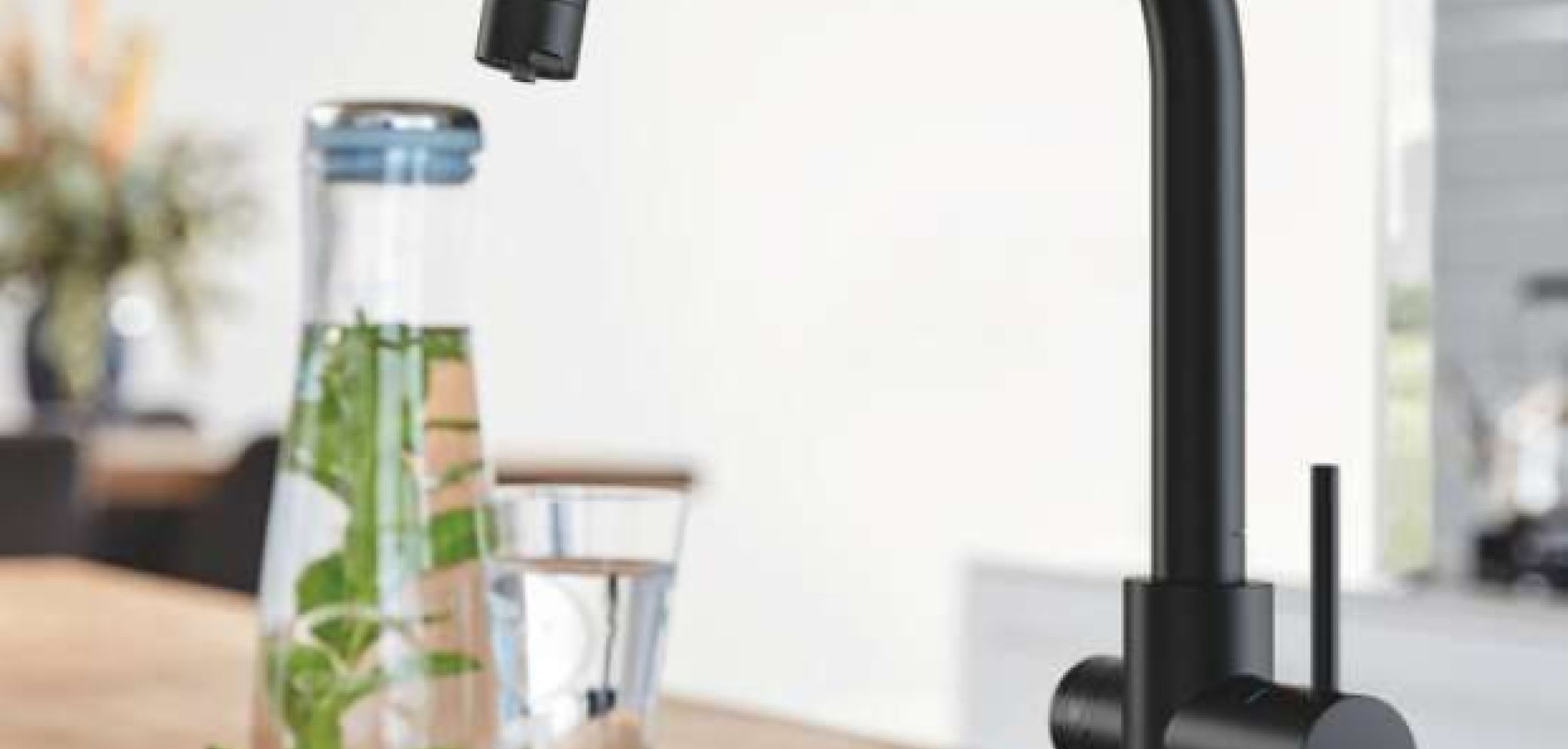 Mit «Grohe Blue Home» kommt gekühltes, gefiltertes Trinkwasser still, in Medium oder sprudelnd direkt aus der Küchenarmatur. Das Wassersystem unterstützt so laut Hersteller bei einem ressourcenschonenden Lebensstil. Dank einer kompakten Gestaltung passt das System in nahezu jede Küche. Küchenschränke mit einer Mindestbreite von 30 Zentimetern sind ausreichend. Das «Grohe Blue Home»-Set besteht aus einer speziellen Armatur sowie einem Kühler mit integriertem Filter und einer CO2-Flasche. Der integrierte Filter für optimale Wasserqualität und das CO2 für das sprudelnde Wasservergnügen können werkzeuglos von der Frontseite her ausgetauscht werden.