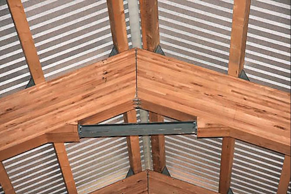 Der Einsatz von Laubholz im konstruktiven Bereich ist eigentlich ein alter Hut. Bei uns zeugen mehrstöckige Fachwerkhäuser davon, andernorts sind vor Hunderten von Jahren Decken- und Dachkonstruktionen in beeindruckenden Kolonialgebäuden erstellt worden. Der Einsatz von Buchenholz dagegen ist neu und das derzeit wohl heisseste Thema der Schweizer Holzwirtschaft. Die Buche war nie ein begehrter Baustoff. Vor allem weil das Holz wenig dauerhaft ist und als «wild» und «schwer zu bändigen» gilt. In gefällten Stämmen werden sogenannte S-Haken stirnseitig ins Holz geschlagen, um das Aufreissen des Stammes zu vermeiden. Doch jeder Förster weiss: Wenn ein Stamm reissen will, dann lächelt er nur milde ob der eingetriebenen Eisenteile.