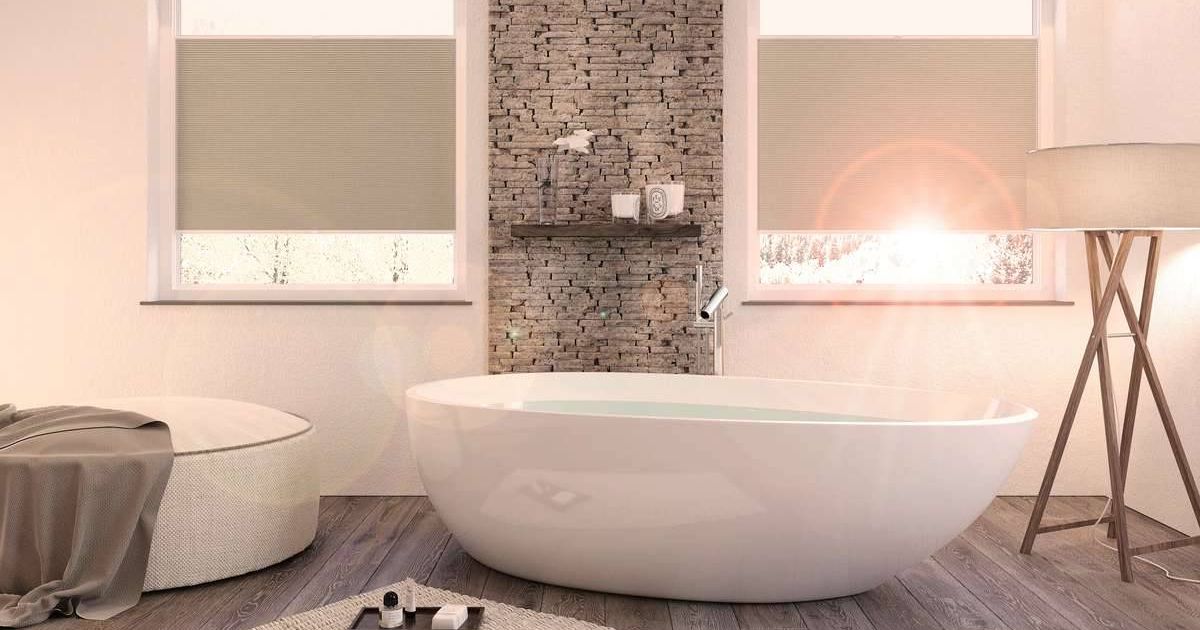 Damit Menschen sich im Bad wohlfühlen, ist vor einem Fenster ein Sichtschutz nötig. Bild: Warema