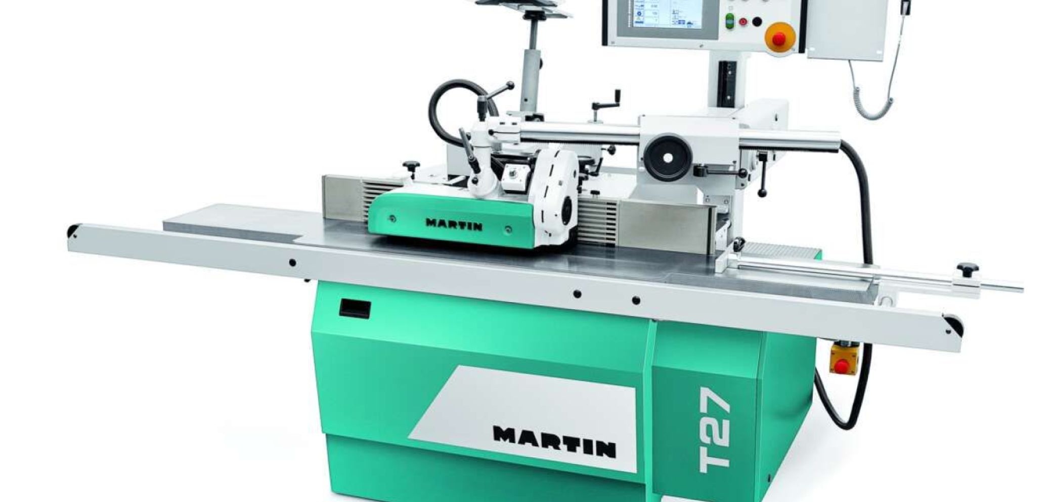 Die Kehlmaschine T 27 von Martin unterstützt den Bediener mit einer intuitiven, modernen Steuerung. Sie bietet die Möglichkeit, bis zu 1000 Werkzeuge in einer Datenbank zu erfassen und zu verwalten. Für jedes Werkzeug können drei Referenzpunkte festgelegt werden. Die Höhen- und Tiefenlage wird bei jeder Bewegung des Werkzeugs – bezogen auf die Tischebene und den Fräsanschlag – immer korrekt angezeigt. Einmal erstellte Einstellungen können gespeichert werden. Die elektronisch einstellbaren Tischringe ermöglichen eine stufenlose Öffnung von 70 bis 250 Millimetern. Das Minimieren des Spaltes zwischen Tisch und Werkzeug ist speziell bei Schwenkfräsen eine Erleichterung. Der beidseitig geführte, elektronische Anschlag kann einfach vom Maschinentisch genommen und wieder platziert werden. Optional ergänzt ein HSK-Schnellwechselsystem die Fräse. In der Schweiz werden Maschinen von Martin über die Eigenmann AG in Dietfurt SG vertrieben.