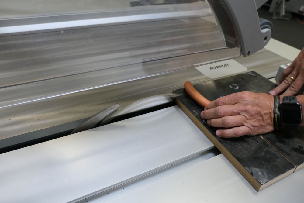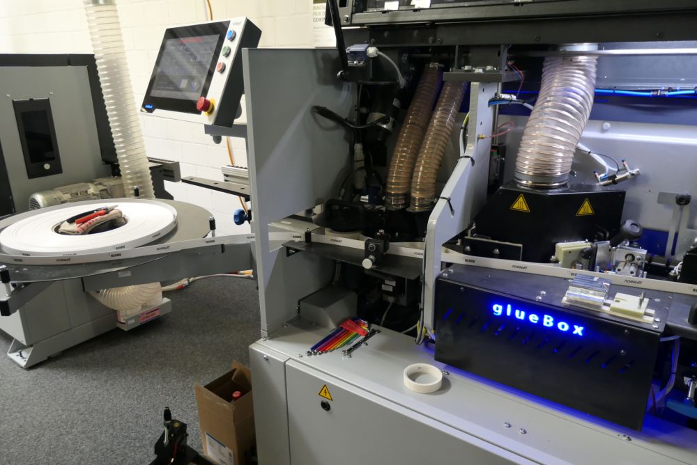Grosses Interesse weckte auch die Gluebox, welche für die Kantenanleimmaschine Tempora F600 von Format 4 entwickelt wurde. Mit PUR-Klebstoff von der Rolle, anstelle eines Leimbeckens, eignet sie sich insbesondere für Betriebe, bei welchen die Kantenanleimmaschine nicht im täglichen Gebrauch ist. Ein Wechsel zwischen Gluebox und Leimbecken ist jederzeit problemlos möglich.